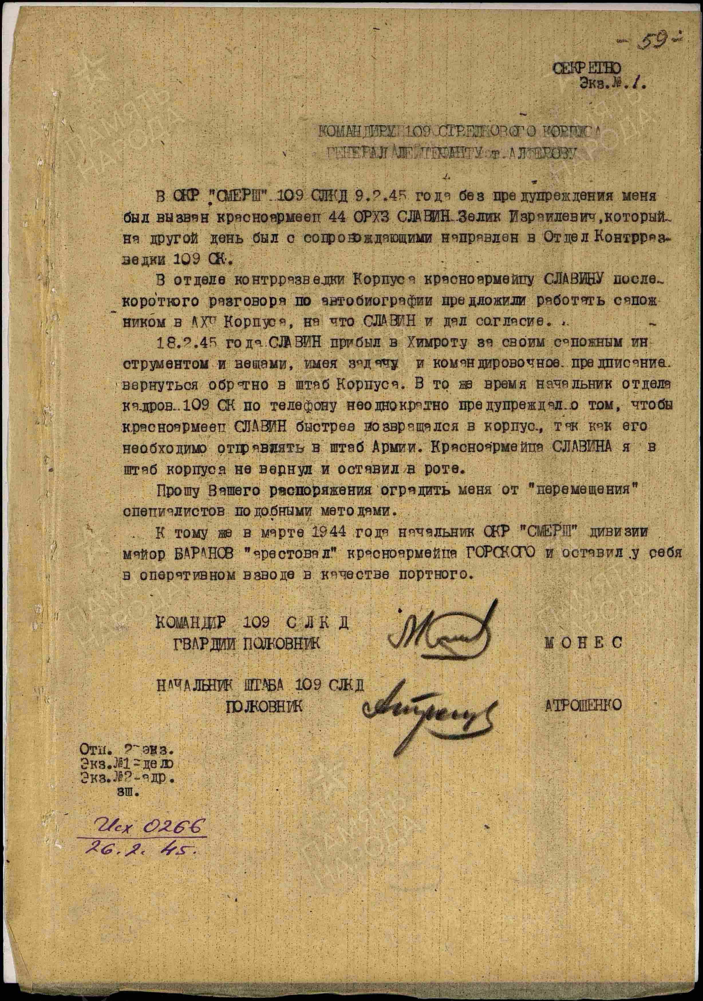 И таки-да, подписавшего эту кляузу на ОКР Смерш командира 109 стрелковой Ленинградской Краснознамённой дивизии полностью звали гвардии полковник Монес Моисей Яковлевич :)