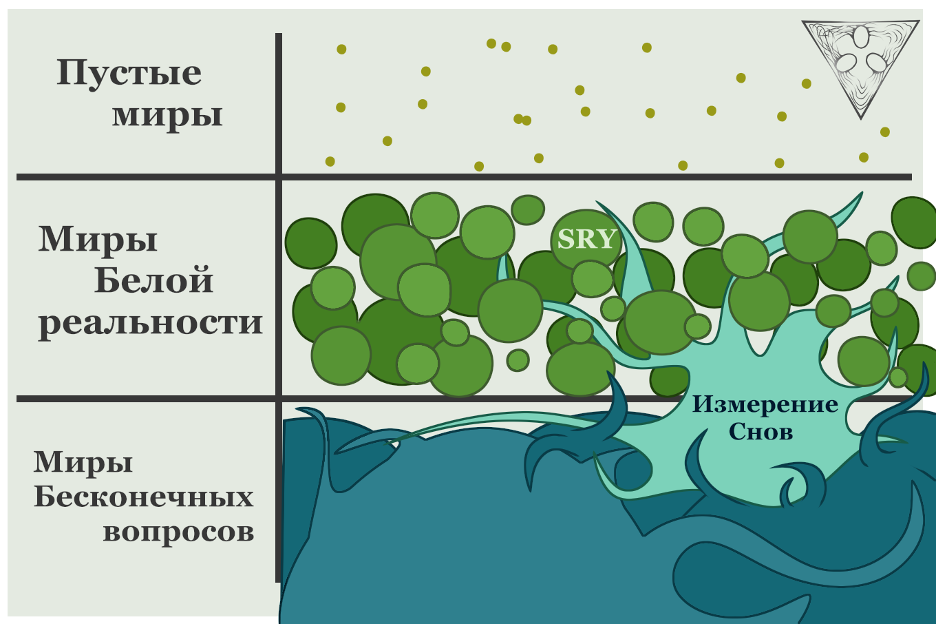 Схема соотношения миров на примере Белой реальности. SRY - Саравей