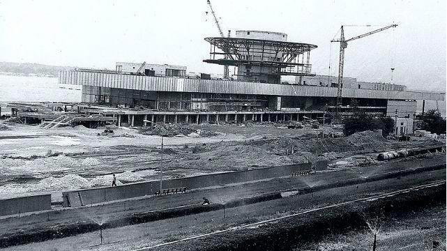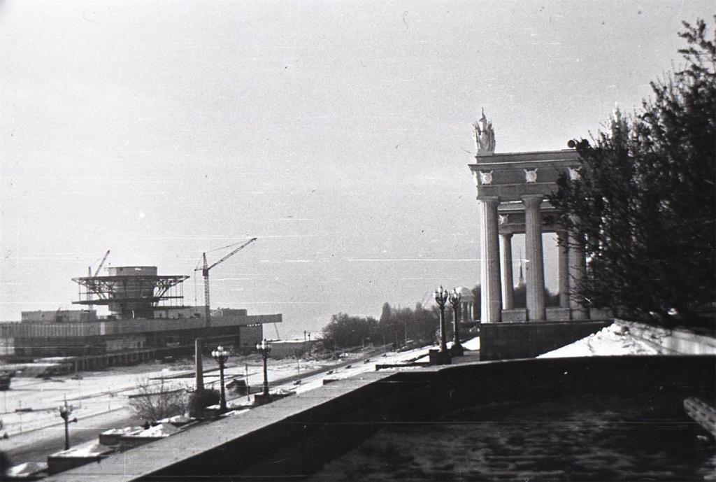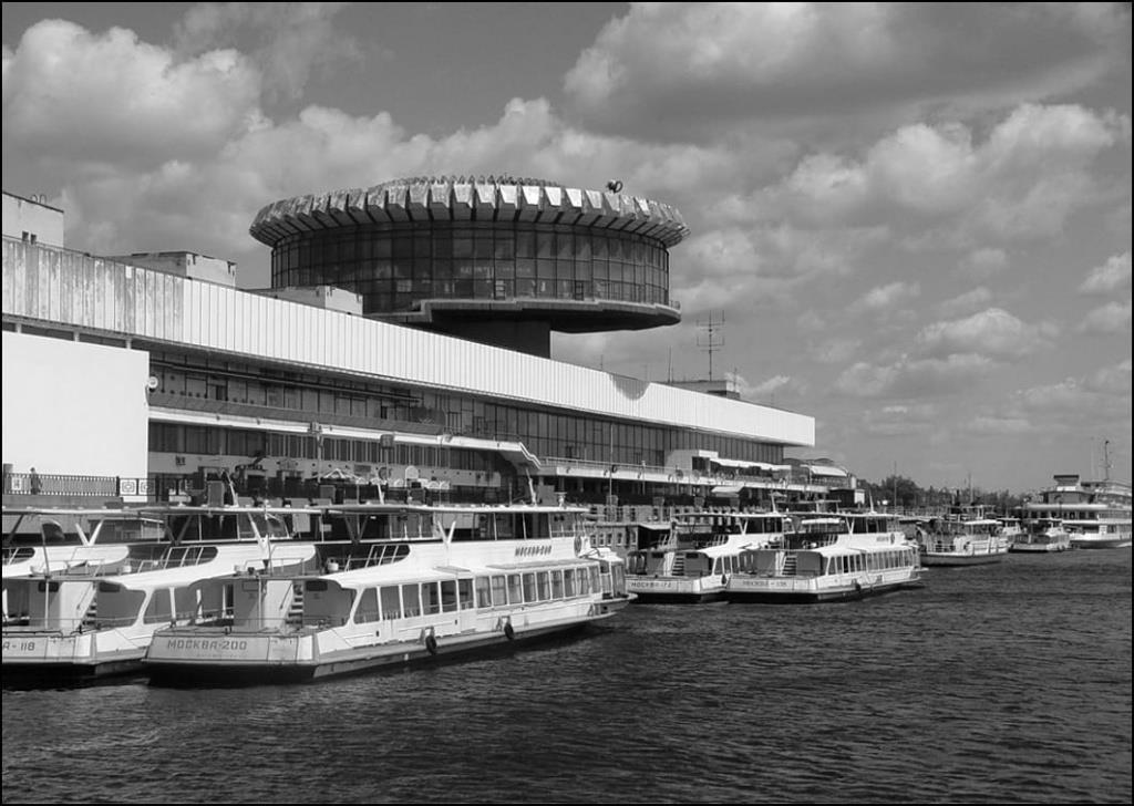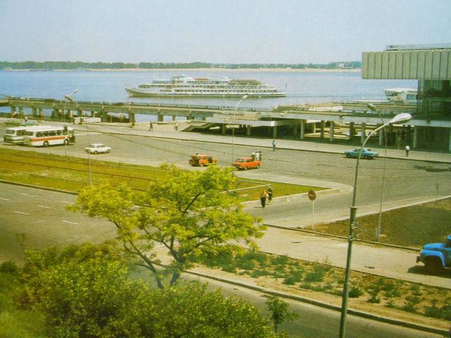 Сказано одновременно и много, и мало. Строительство этого уникального здания, размером с московскую Красную площадь, началось в 1967 году. В 1978-м стройке помешала Детская Железная Дорога, которую "временно" (до сих пор) перенесли с Набережной в пойму Царицы - об этом было здесь https://author.today/post/151333 , в 1980-м была открыта первая очередь речвокзала, и он начал принимать пассажиров, но строительство продолжалось вплоть до 1992-го! Великолепное здание в духе позднего СССР - существует даже легенда, что ресторан-"шайба" могла когда-то вращаться, но людей видевших это своими глазами я не знаю, поэтому лучше помолчу - пусть за себя говорят фотографии разных лет: