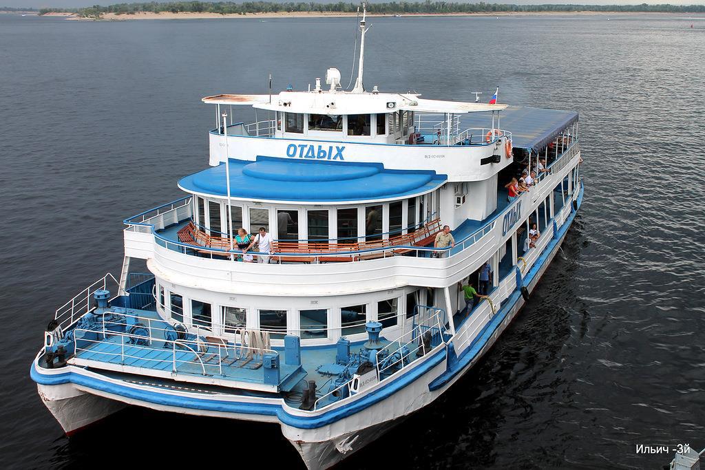 Автор: ЛиСиЦаПрогулочный теплоход "Отдых" был построен в единственном экземпляре в 1963 году. Двухпалубный катамаран шириной в тринадцать с лишним и длиной в сорок четыре метра покатал не одно поколение волгоградцев и гостей Города. В вечернее время на верхней палубе проводились и проводятся дискотеки. Какой же маленькой по сравнению с ним кажется пришвартованная рядом "Москва":