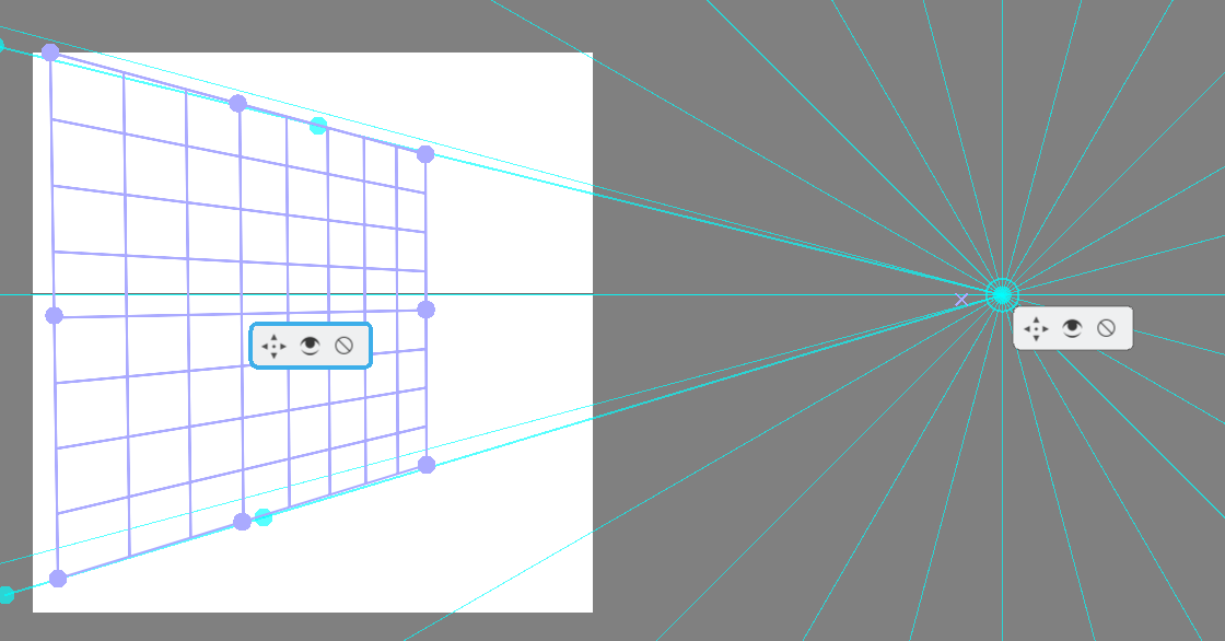 3. Устанавливаем сетку Perspective относительно этих отрезков. У этого инструмента, кстати, тоже есть точка схождения, крестик. И он примерно там же, где центральная точка. Если чуть-чуть поманьячить над углами сетки, и вовсе совпадёт.
