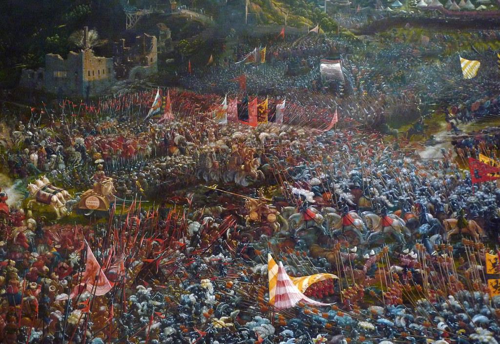 В общем, "Битва Александра Македонского с Дарием" появилась не на пустом месте. Более того, у нее был конкретный предшественник (о чем в детстве я даже не догадывалась) — картина самого Альтдорфера "Победа Карла Великого над аварами".
