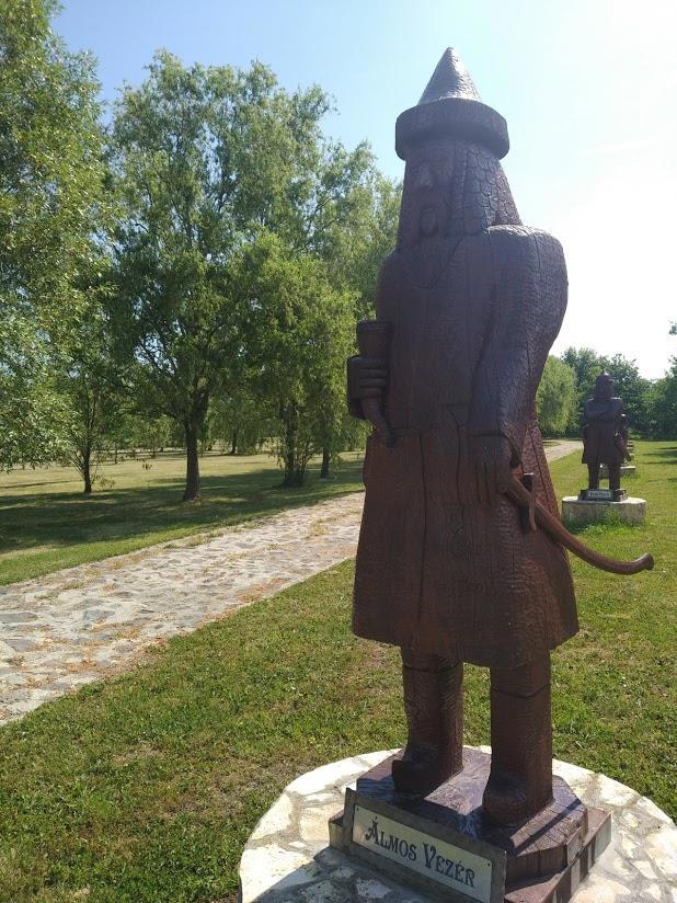 Однако во главе вождей, вырезанных из дерева, стоит не кто иной, как Атилла Гун, которого в Средние века венгерские хронисты любили выводить как предка венгерских вождей-переселенцев, тем самым, в некотором смысле, легитимизируя само Завоевание (мол, мадьяры пошли отвоевывать земли дедов, принадлежавшие им по праву).