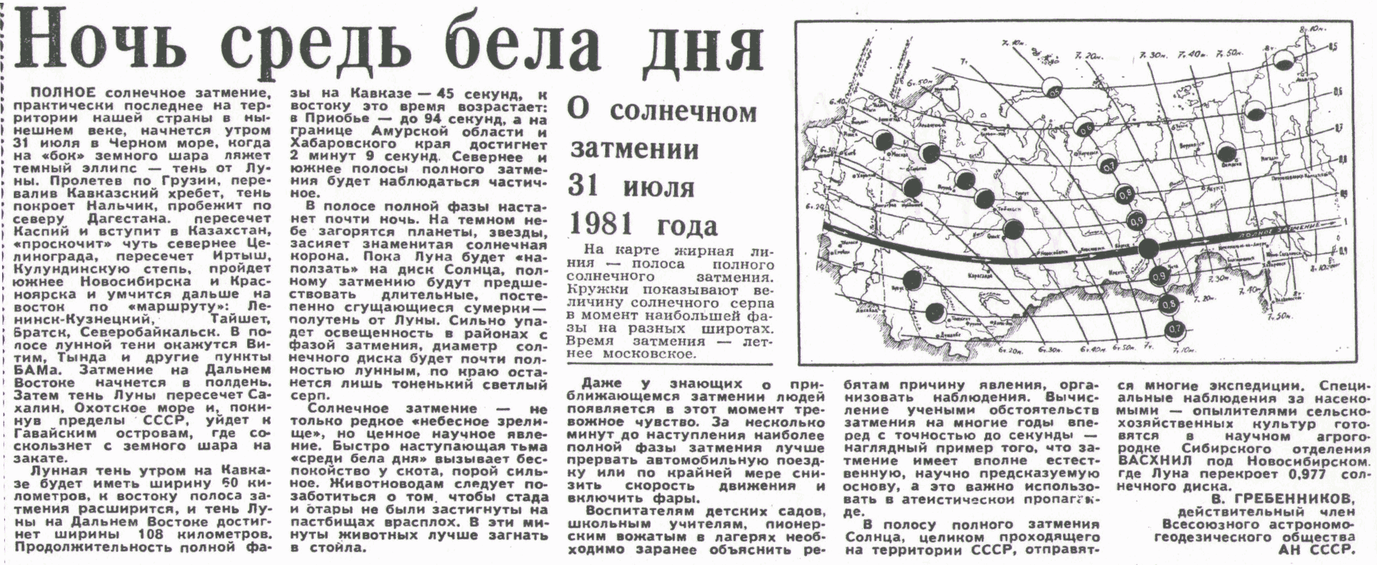 Да! Тогда же полное солнечное затмение было! 31 июля 1981 года.