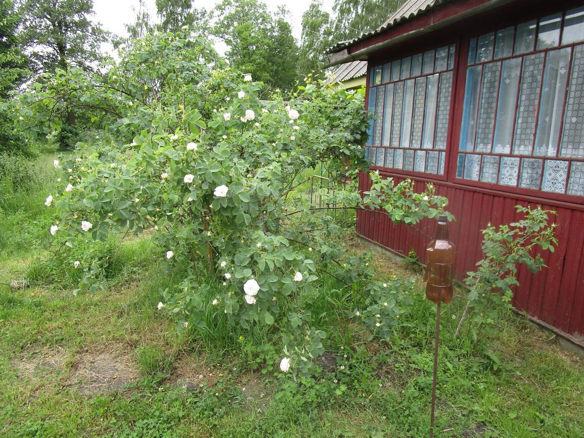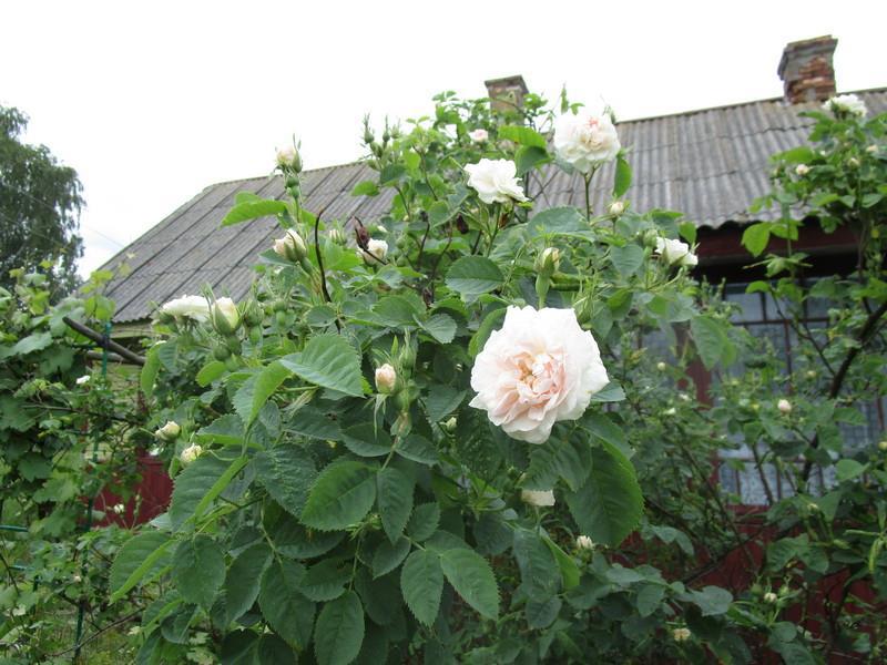 Прямо рядом с дверью дома расцвела роза: