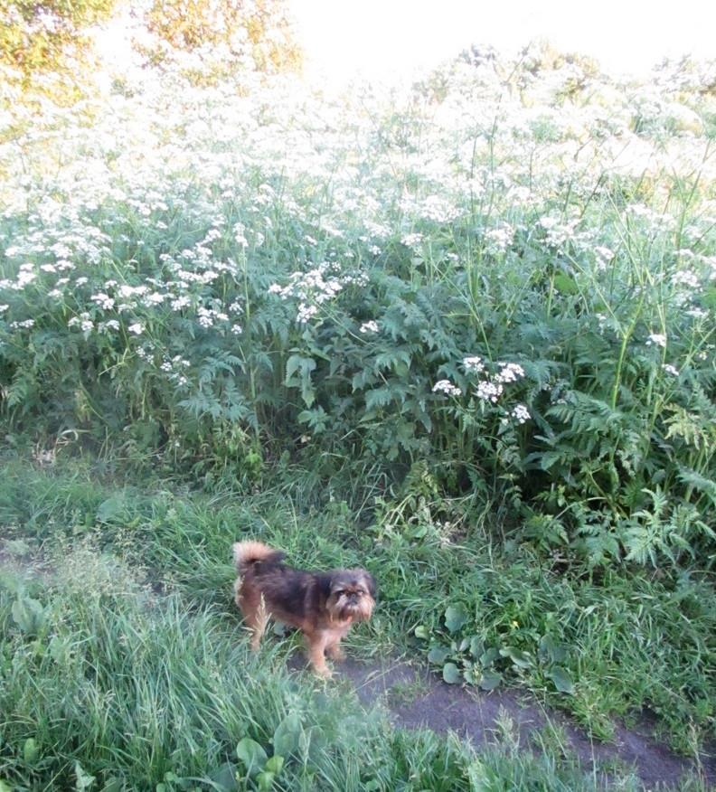 Моя псина в шоке от этих джунглей, она все два почти года своей жизни провела в городе и не привыкла к зарослям.