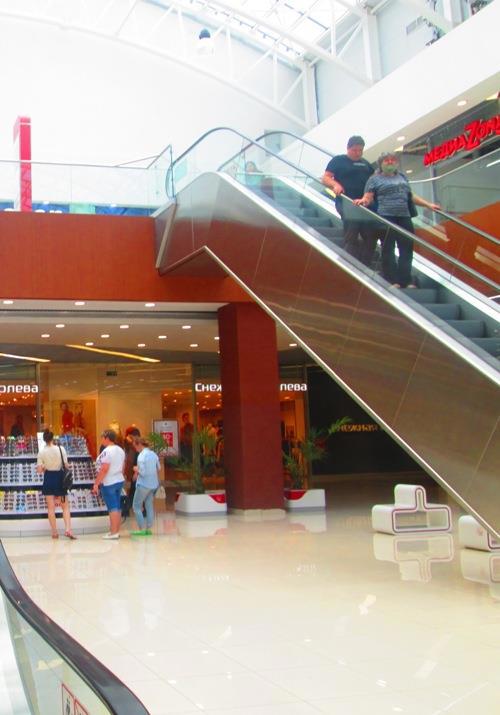 В «Сиесте» мы пробыли недолго и отправились в «Тау». Не могу сказать, что «Тау» меня впечатлил — собственно, ничего иного я и не ожидала от торгового центра. Обычный чистенький и крупный ТЦ с лесенками-эскалаторами в четыре этажа и подземной парковкой. Все как в Москве. Если уж про эскалаторы, то даже в нашем районном торговом есть такой же подъемник на второй этаж. Поэтому, радовалась всему только дочка, а я радовалась ее реакции.