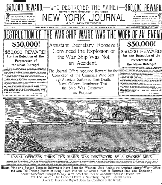 Об этих телеграммах известно "с третьих рук" сам Херст их посылку отрицал, но можно точно сказать, что фраза "я предоставлю войну" вполне отражает его тогдашнюю бурную деятельность. В тот момент его New York Journal вел ожесточенную борьбу с New York World другого тогдашнего медиа-магната, как сказали бы сейчас – Джозефа Пулицера. Именно эту парочку называют создателями стиля "желтой журналистики" – хотя и до них американская пресса была тем еще тортом, но соперничество Хёрста и Пулицера подняло уровень погони за сенсациями и пренебрежение к достоверности на новые высоты. При этом оба соперника видели в испано-американской войне шанс для поднятия популярности и тиражей своих изданий. Начиная с 1895 года, обе "желтые" газеты постоянно вываливали на своих читателей вал слухов, сплетен и просто выдумок о том, что происходит на Кубе и что вмешательство США это единственная возможность защитить "идеалы демократии и гуманизма".
