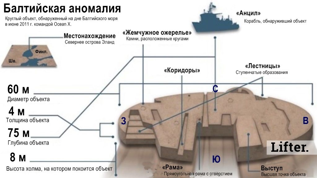 Началось всё в 2011 году, когда боковой гидролокатор местных морских кладоискателей нарисовал на своём экране довольно странное образование на глубине в 87 метров. Форма случайно обнаруженного объекта была такой странной, что кладоискатели сразу насторожились. Это не было похоже ни на один вид кораблей, однако и на природное образование со стопроцентной вероятностью не тянуло. Видимо вспомнив принцип «не догоню, так – согреюсь», кладоискатели приняли решение рассказать о своей находке миру. Ребята не ошиблись – шум поднялся немалый и название объекта «Балтийская аномалия», присвоенное прессой, оказалось самым выдержанным и скромным. Другая, менее выдержанная часть, написала сразу решительно – «Балтийский НЛО». Тот факт, что объект находился на дне и ни разу не летал никого не смутил – зато он здорово напоминал космический корабль из киносказки «Звёздные войны».