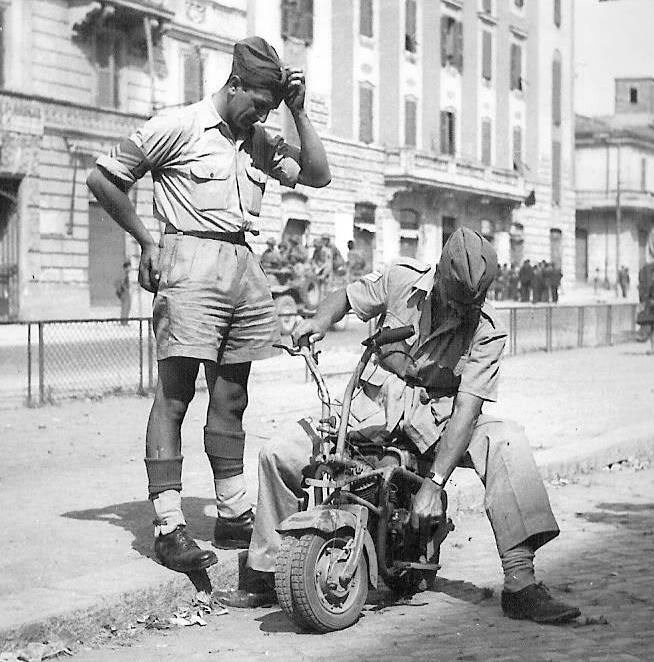 Нельзя не упомянуть ещё об одном типе мототехники, которую сейчас почему-то считают чем-то вроде курьёза, но дело было серьёзное. Речь о микромотоциклах. Их разрабатывали для десантных подразделений. Вот, например, американский вариант решения проблемы быстрого перемещения для десантников Cushman: