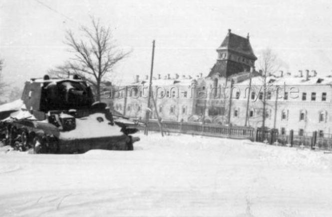 Разместил фото нашего сгоревшего КВ-1 в Стрельне. Еще фото - показывающее, что за ним немецкое кладбище. Справа аккуратные крестики.