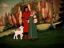 5. Сказка: Козлёнок бежит к водоёму где лежит Алёнушка зовёт её вернутся, Алёнка ему отвечает что не может подняться из воды. Ведьма прознав про призывы козлёнка к сестре приказывает его зарезать.