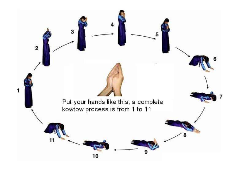 Приветствие императору включало "три колена и девять поклонов". Объясню еще раз: шмяк, бум!, бум!,бум! шмяк, бум!, бум!,бум!  шмяк, бум!, бум!,бум!