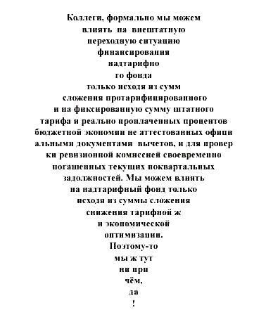 Из строгой речи зам-зава «анамсиРОНО» никто из слушателей не понял ни слова, но всем стало абсолютно ясно, что очередная обдираловка нищенских учительских кошельков неминуема, и жаловаться опять некому.