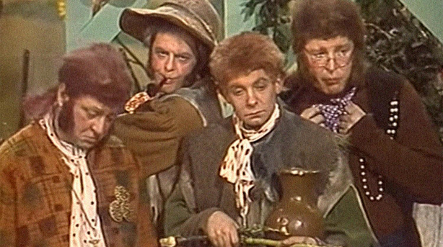 Должен сказать, что, в принципе, весь фильм мы будем перемещаться из одной локации в другую, а сами локации представляют из себя набор картонных коробок, на которых написаны разные названия, и, иногда, схематично нарисованы деревья, люди и всякая хтонь.