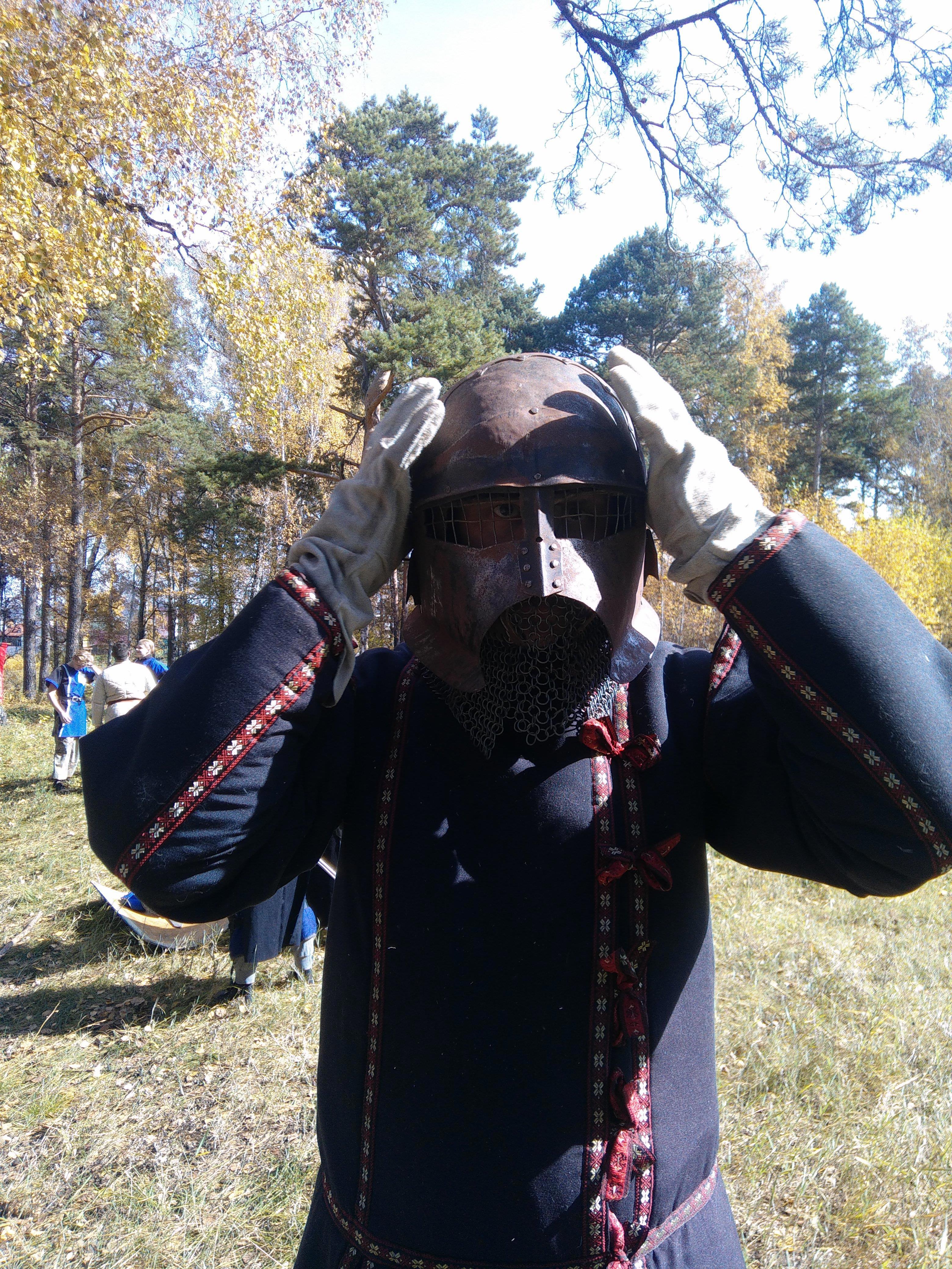И даже если взять один подшлемник к этому шлему, то тоже почти ничего не видать, там по центру всё кольчужной сеткой прикрыто. Правда, фотка только в профиль