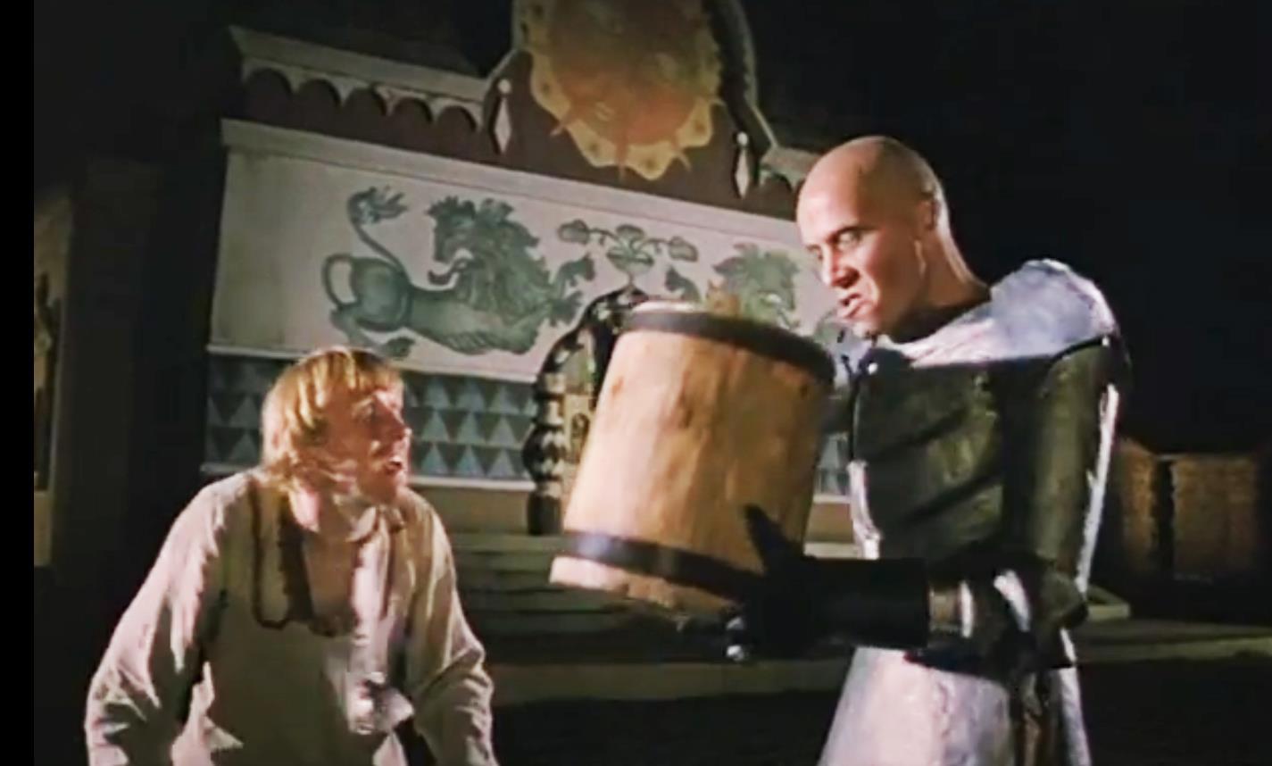 Кадр из детского фильма: "Там, на неведомых дорожках". Кощей восстанавливает силы водой.