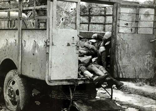 Результат пулеметной засады по пехоте на грузовиках выглядит примерно так.