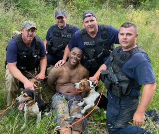 Несмотря на то, что в операции по его поимке участвовали многочисленные правоохранительные органы, включая ФБР, это нисколько не помешало четверым полицейским, поймавшим мужчину, тут же нацепить на лица улыбки и сделать с ним совместное фото.