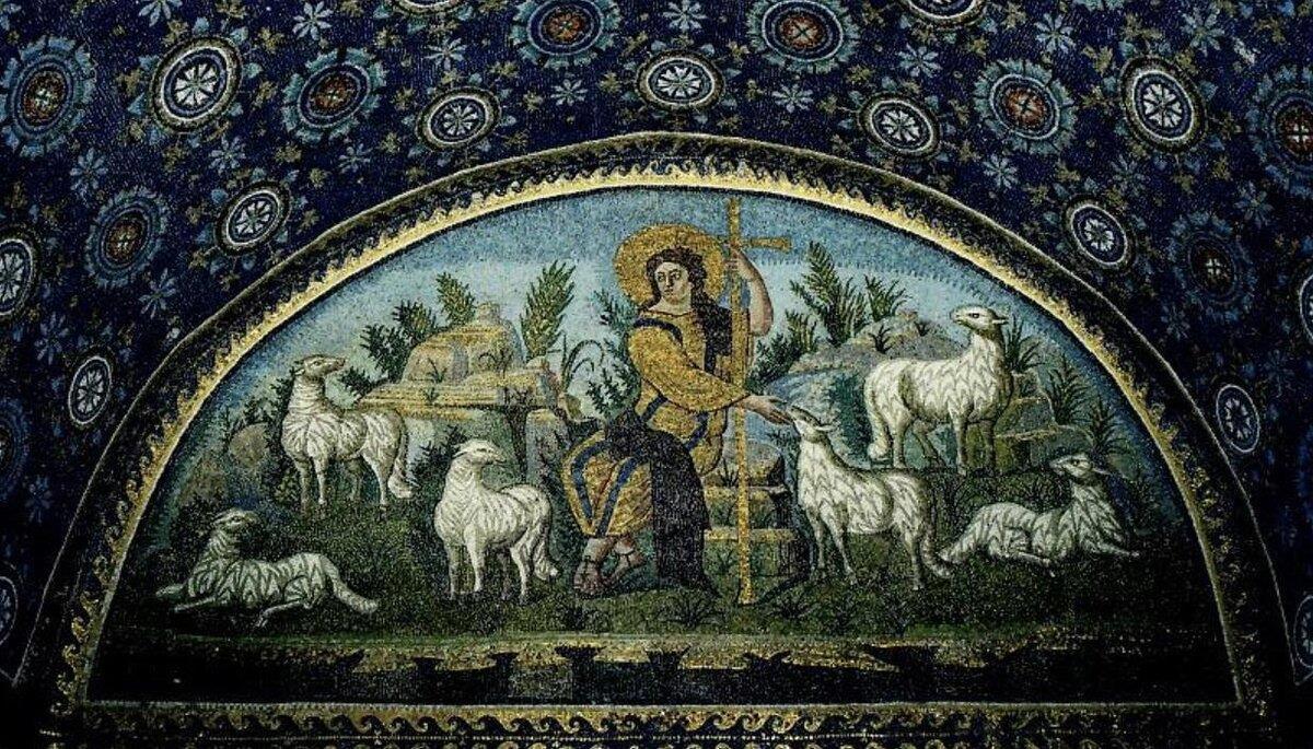 И на мозаика из мавзолея Галлы Плацидии в Равенне (V в. н.э.) Христос тоже бритый.