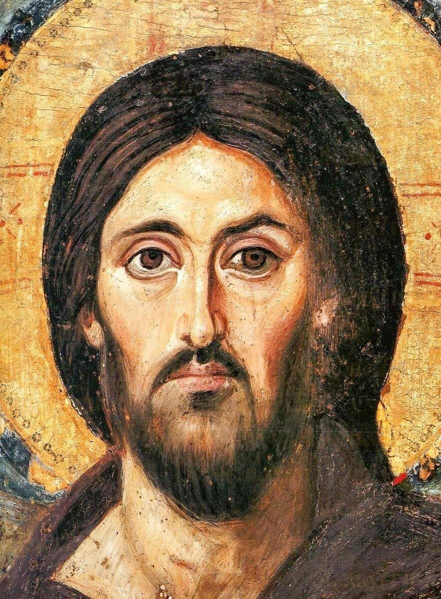 Первая икона с бородатым Иисусом - «Христос Пантократор» из Синайского монастыря (VI в. н.э.). Кстати, на удивление качественно нарисованная.