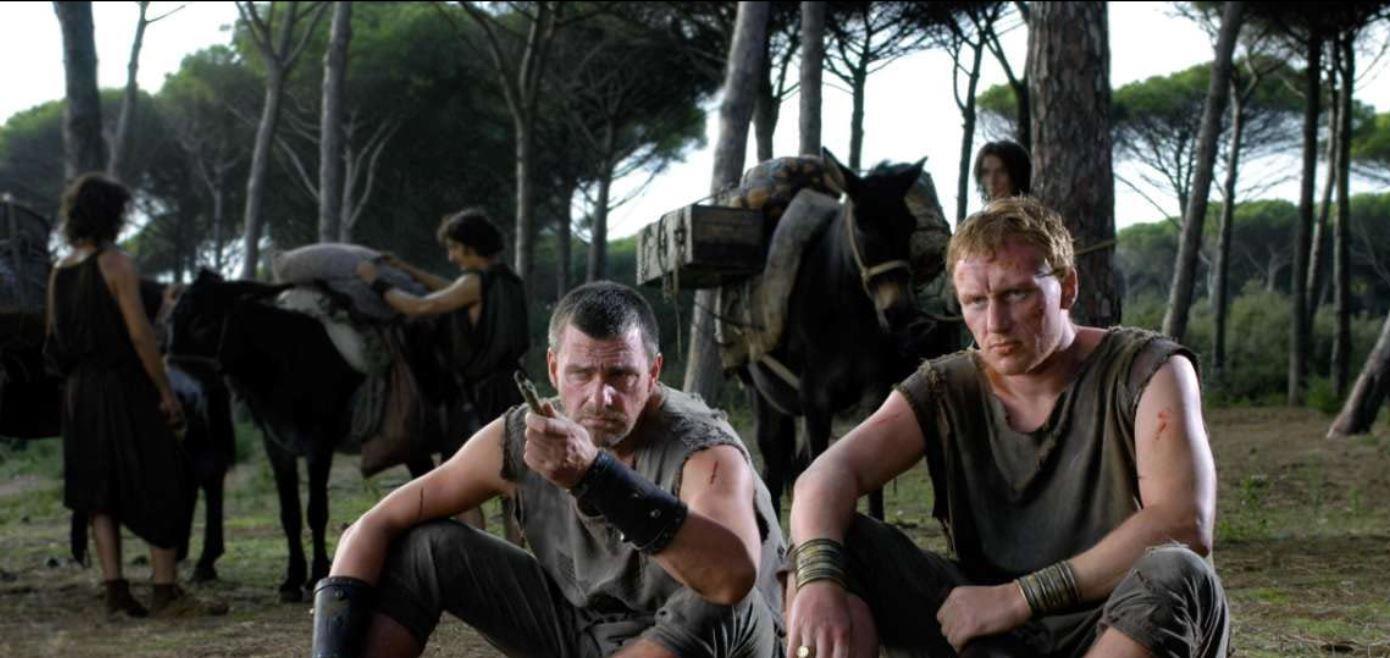 Тит Пуллон (Рэй Стивенсон) и Луций Ворен (Кевин Маккидд) в сериале "Рим".