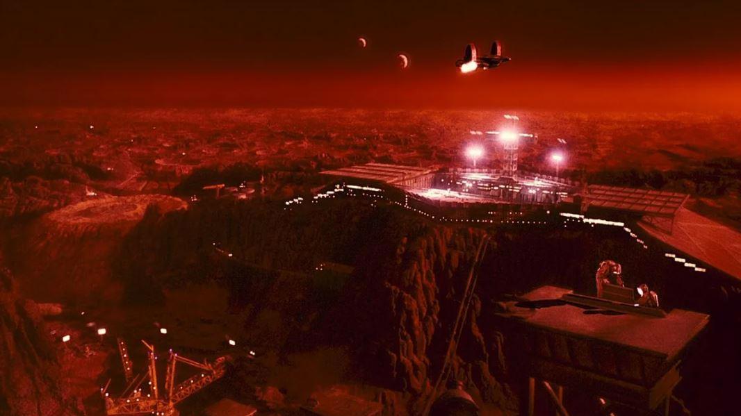 2. Отлично показана колония на Марсе и в этом плане фильм делает тогдашние «Звездные войны» просто на ура. К слову в «Звездных войнах» (тех что дали в 1980-1990) корабли нарисовали, а вот с колониями получился полный провал, ничего кроме военной техники не показали. Тут колония продумана именно как полноценное живое поселение со всем необходимым: защитными экранами, вентиляцией, шахтами, системами жизнеобеспечения, гостиницами, космопортом и т. д. и т. п. Глубокая прорисовка. Самое главное показано руководство колонии во главе с местным олигархом и вся иерархия, а также противостоящие ему силы оппозиции. Такой подробной прорисовки сейчас даже на уровне литературных произведений, а не то что экранизаций часто не вижу. К слову мир в ремейке намного более примитивный.