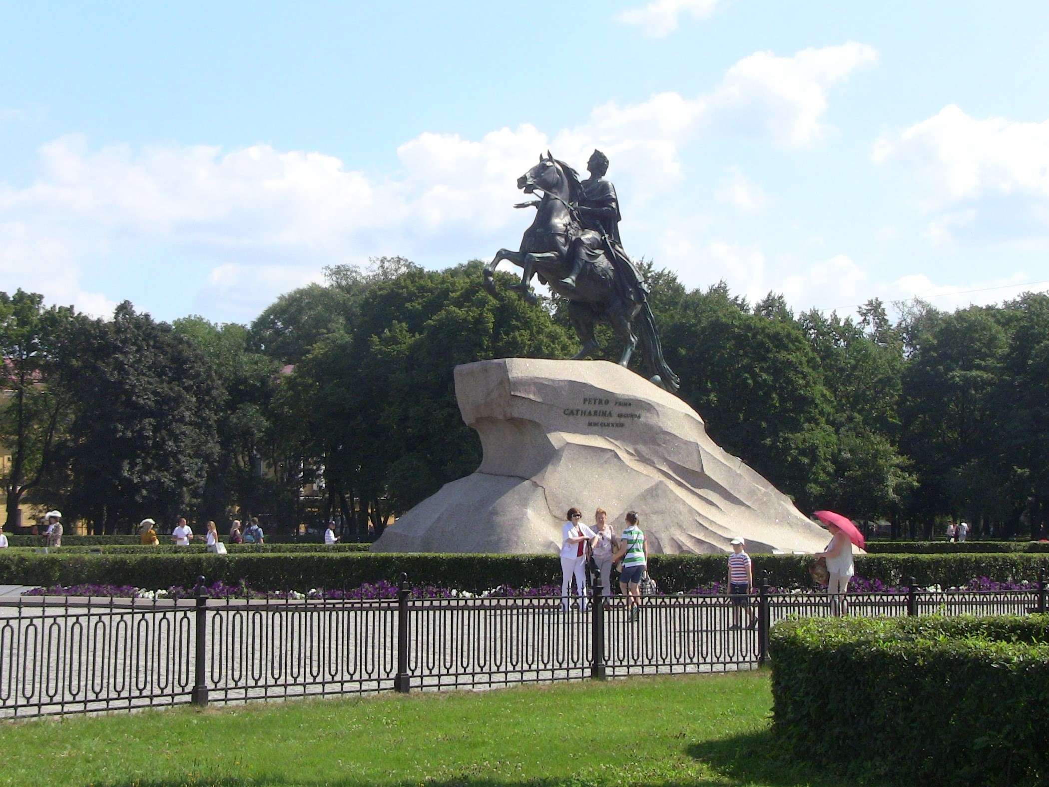 А вот Медный всадник это сюда. На день города и на некоторые другие большие праздники у памятника дежурит сам Царь Петр. Он охотно жмет желающим руки и фотографируется с ними.