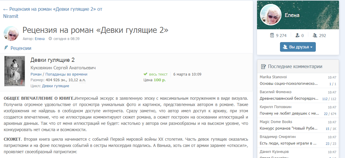Мне не так часто рецензии пишут - не ТОП чай, но бывают. Сегодня с утра просто прекрасная опубликована. Читаю и перечитываю... Вот и всем рекомендую её посмотреть и грамотного рецензента на заметку взять.