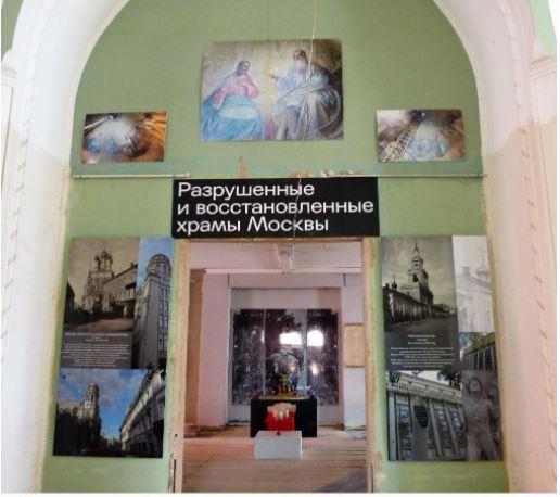 Этим летом как-то отправились мы с Наткой гулять в центр города. На Новой площади случайно заглянули во двор церкви Иоанна Богослова под Вязом. Той самой, где когда-то был Музей истории и реконструкции Москвы. И оказалось, что на втором этаже этой церкви проходит выставка "Разрушенные и восстановленные храмы Москвы". Нам стало интересно, и мы заглянули посмотреть.