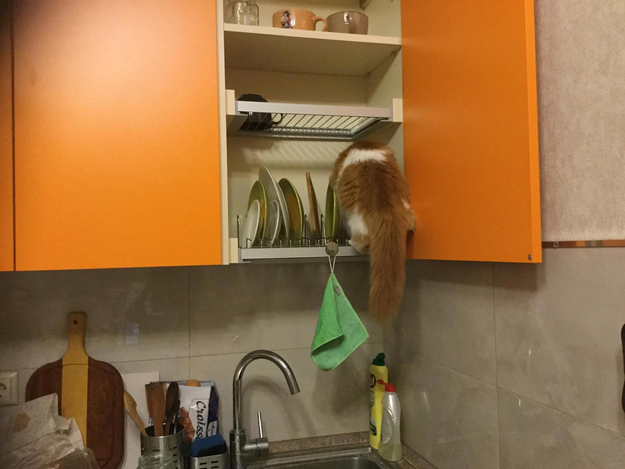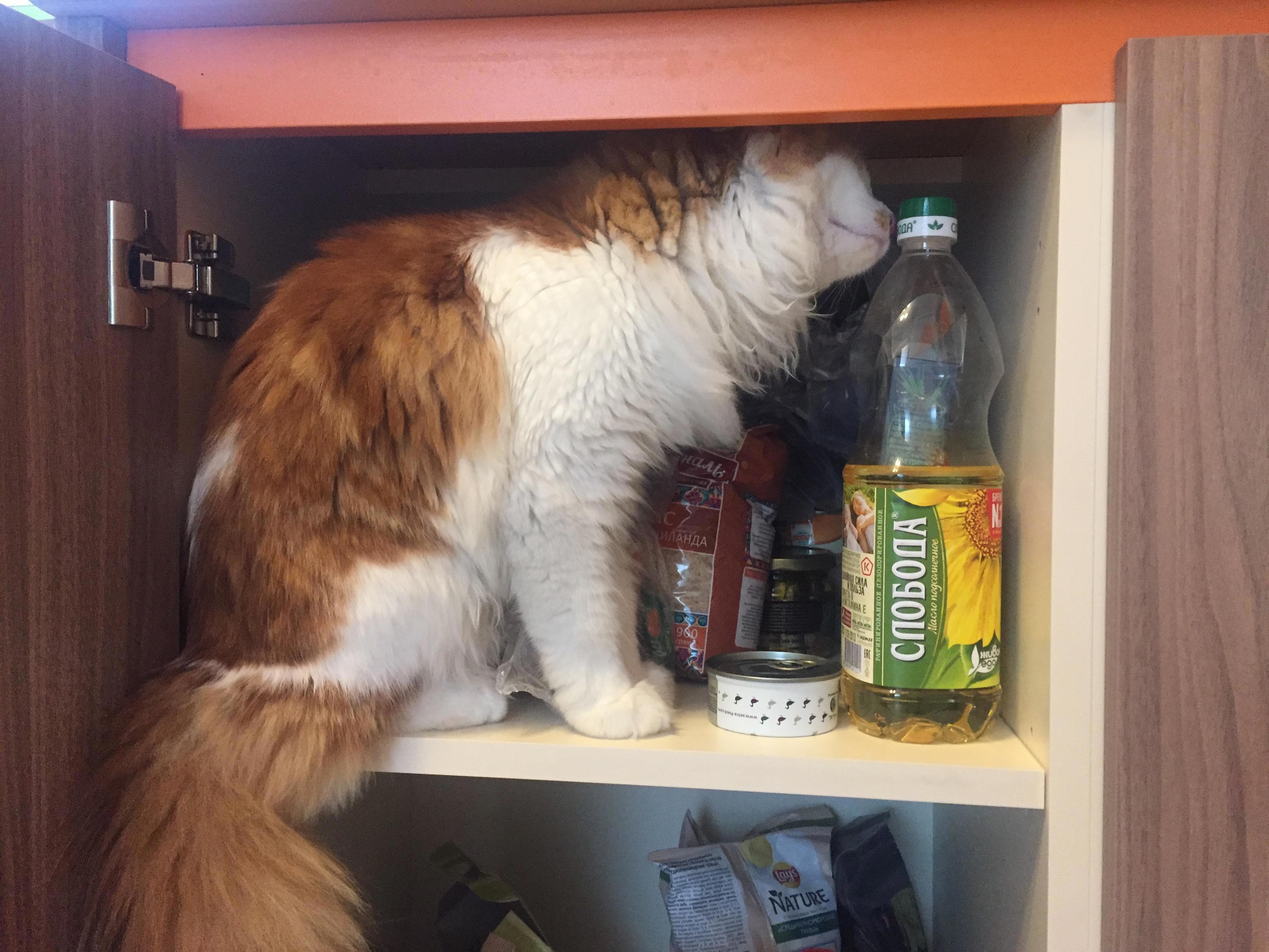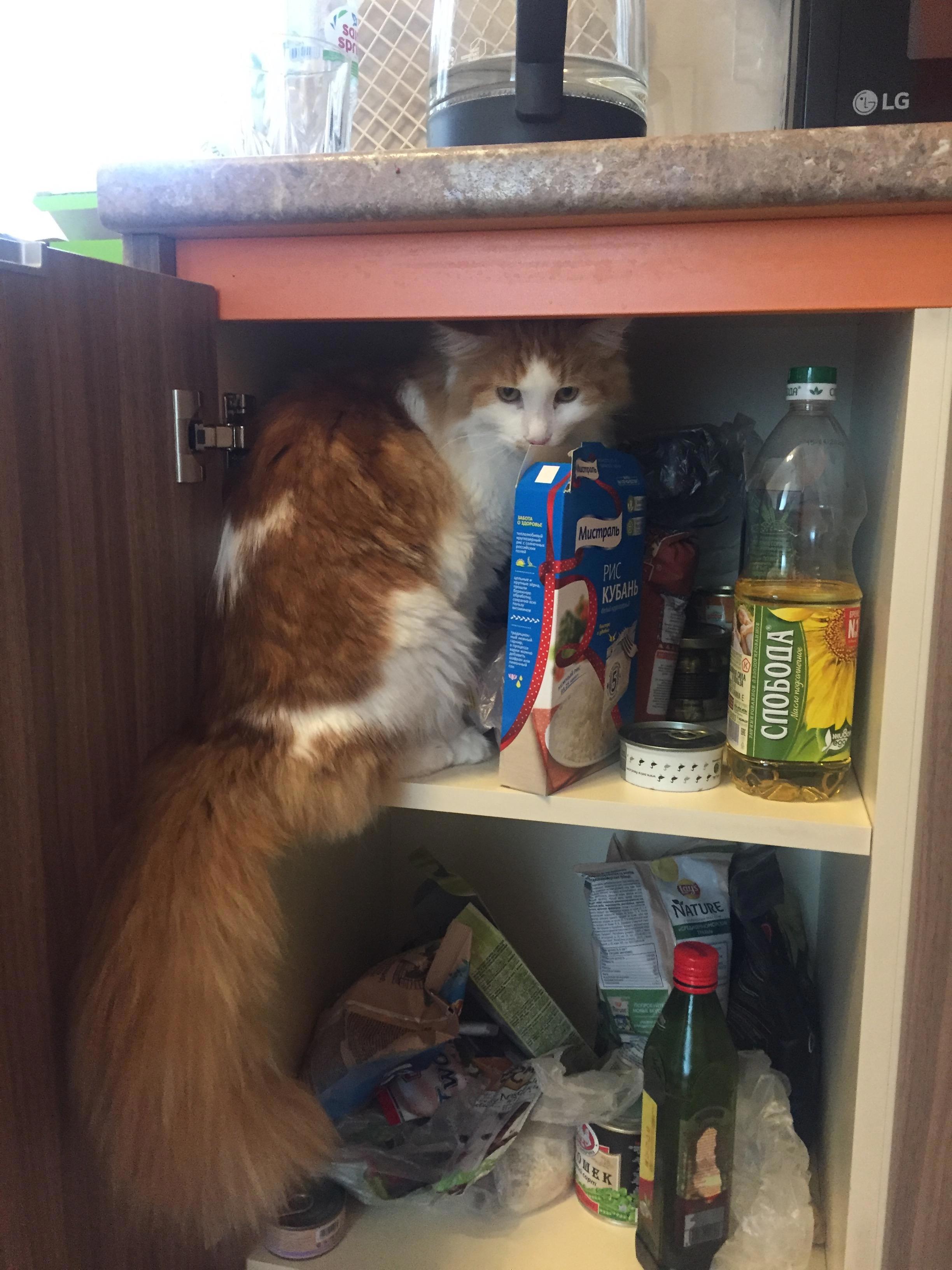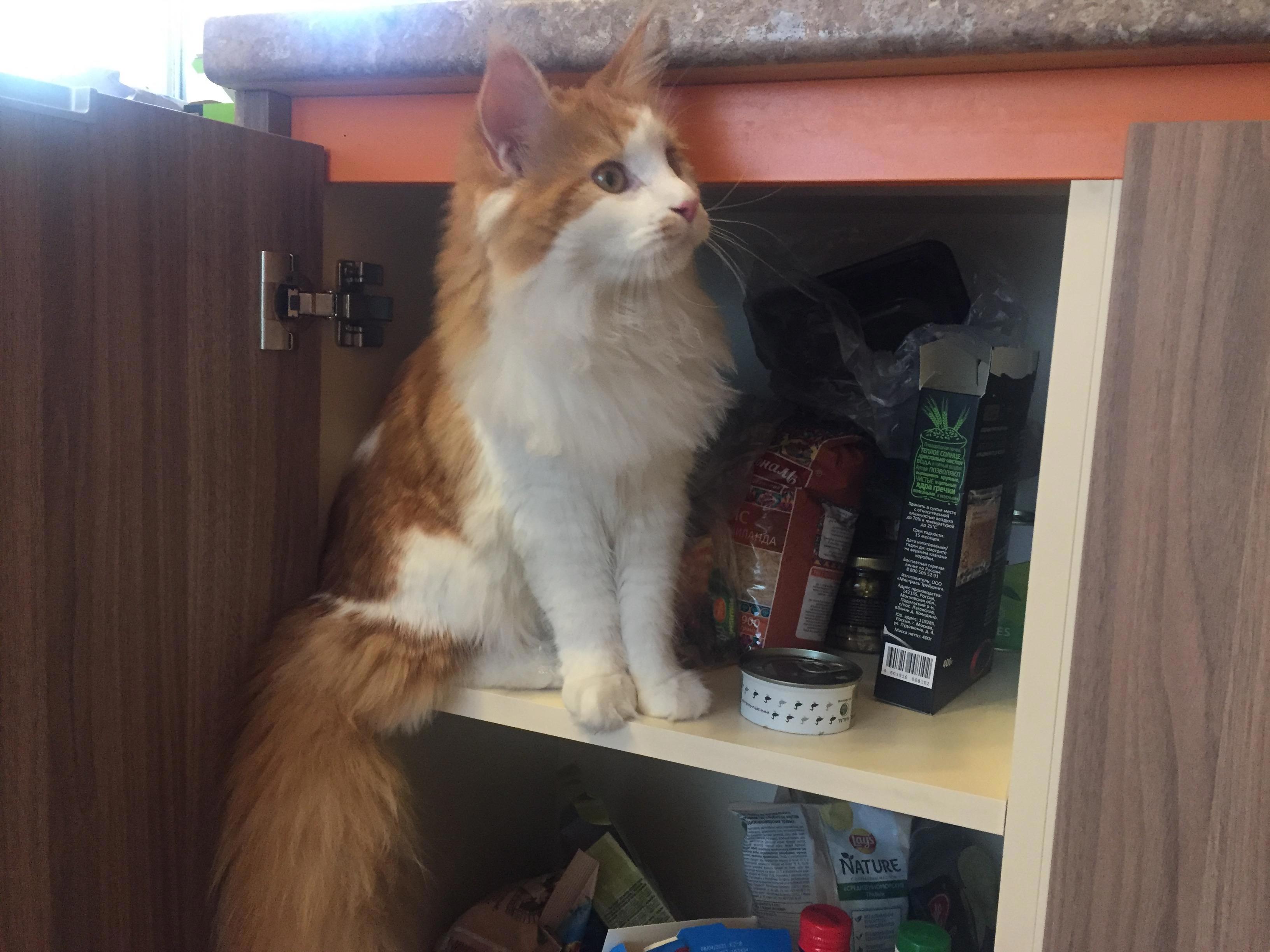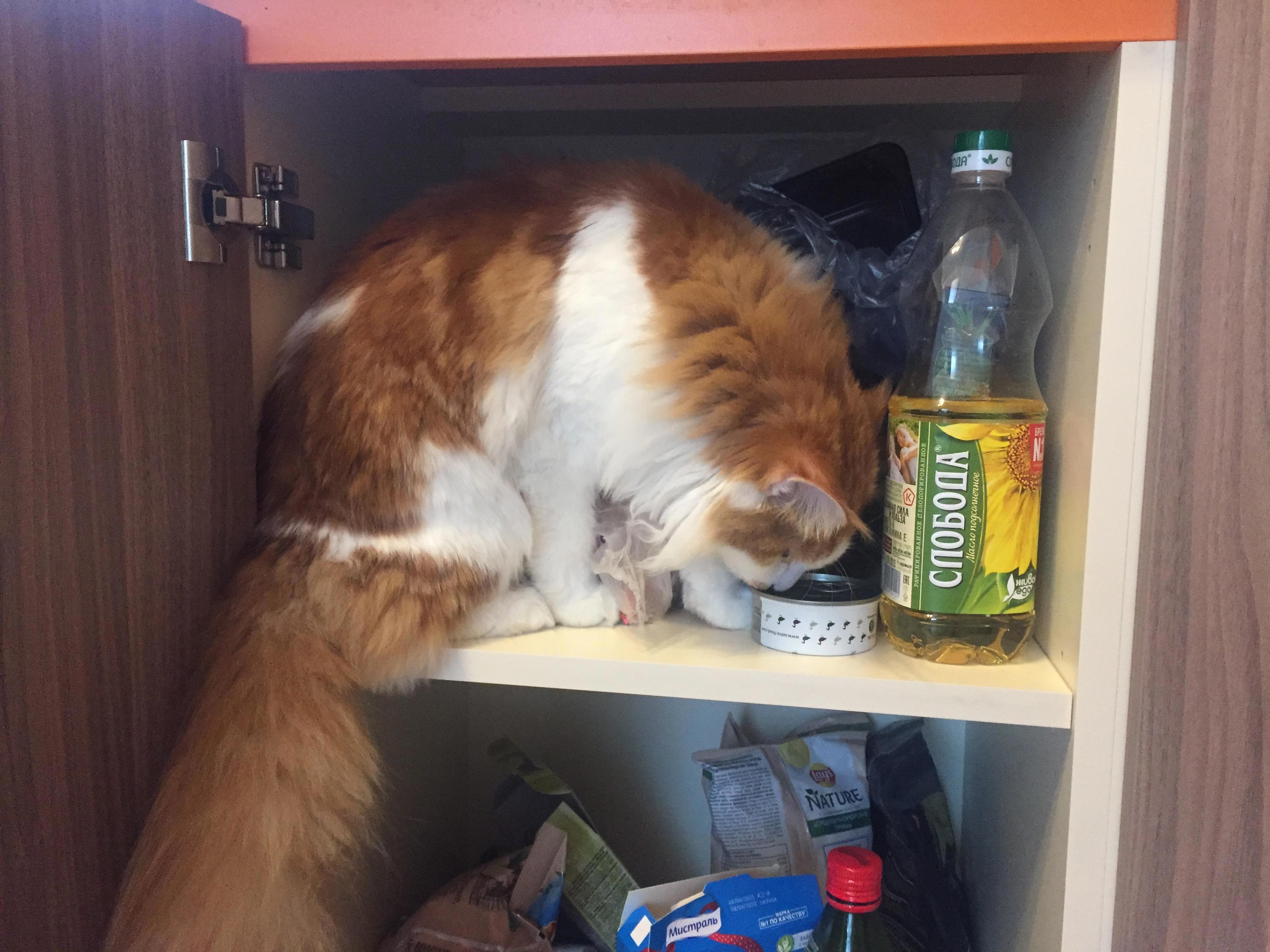 А вот так Кнопка охотится на нашу еду...