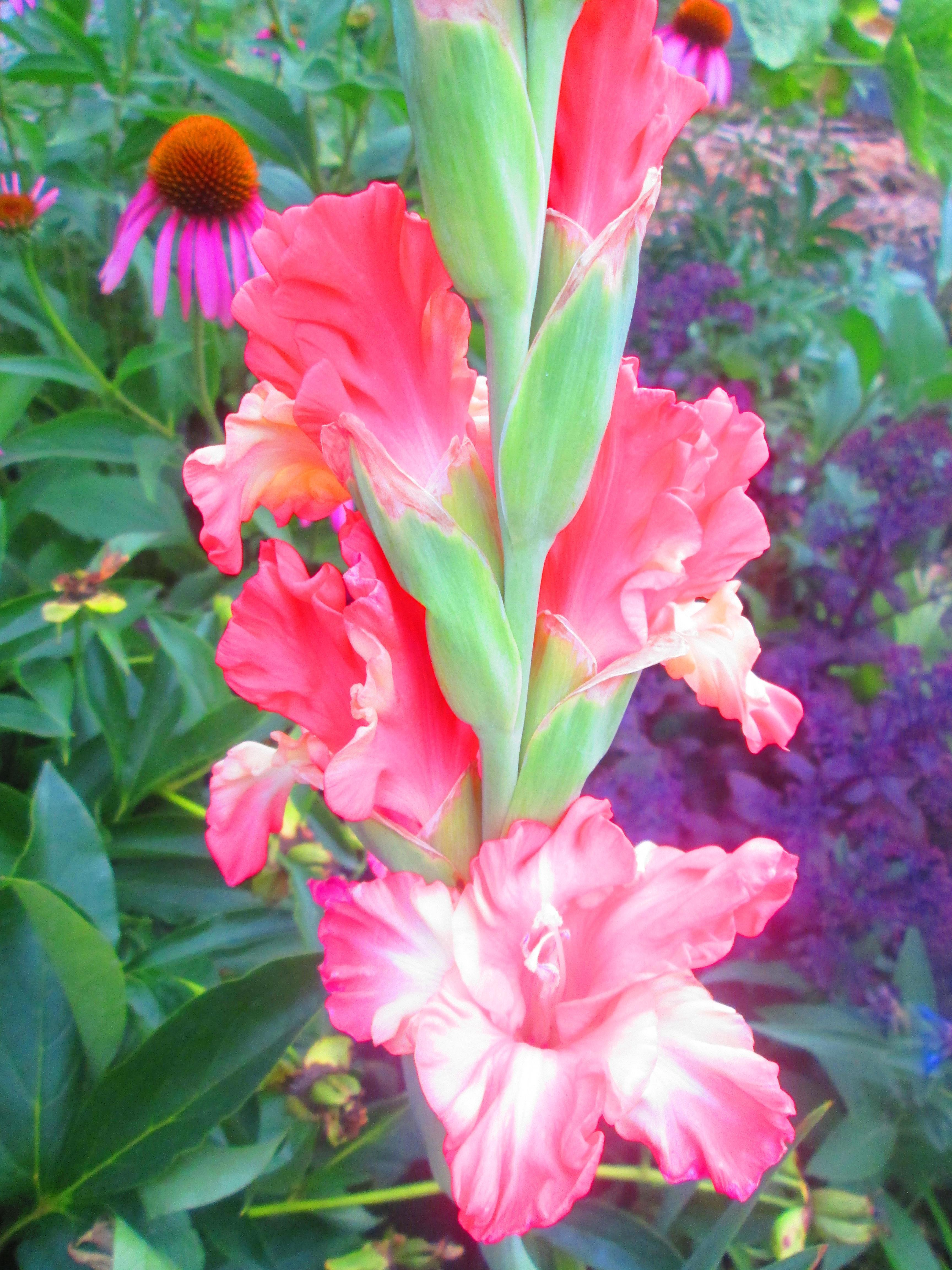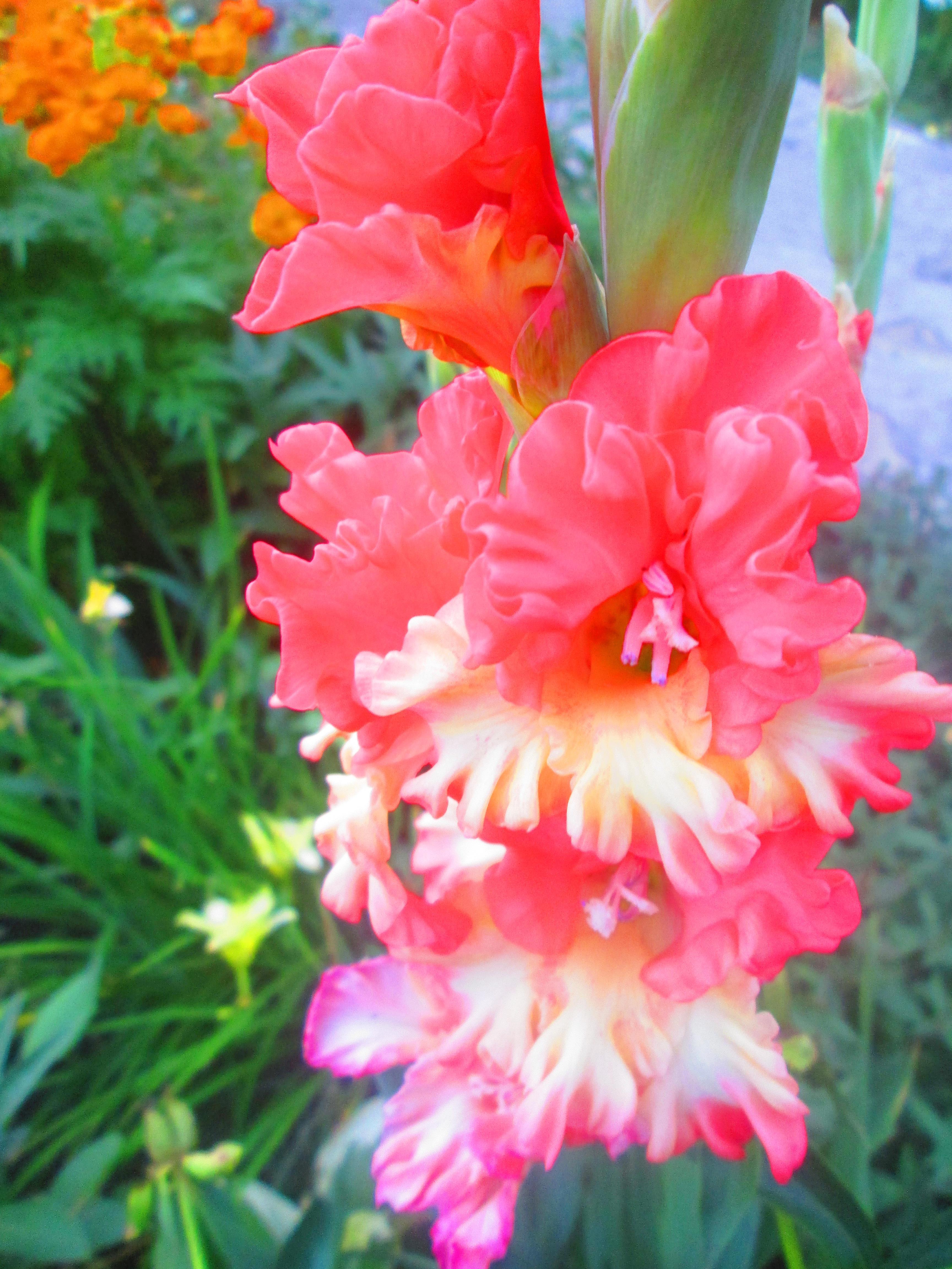 Недавно у меня цвела лилия, и она была настоящей королевой сада. А теперь расцвел гладиолус. Он пока еще не полностью распустился, но я уже вижу, какая это красота! Никогда раньше не высаживала их у себя, теперь вот очень довольна: