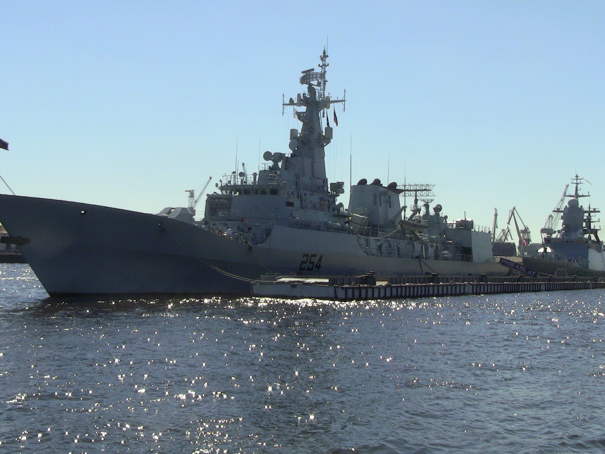 Теперь взглянем еще левее. На Неве у причала стоит главная цель нашего похода: фрегат PNS «Aslat» (254) ВМС Пакистана. Он был введен в состав военно-морского флота 03 сентября 2013 года и на данный момент является самым мощным кораблем ВМС Пакистана. Этот корабль стоял на Неве всего три дня, поэтому пришлось сдвинуть остальные походы немного в сторону, так как иностранная военка, да и вообще иностранные суда заходят к нам не так часто.