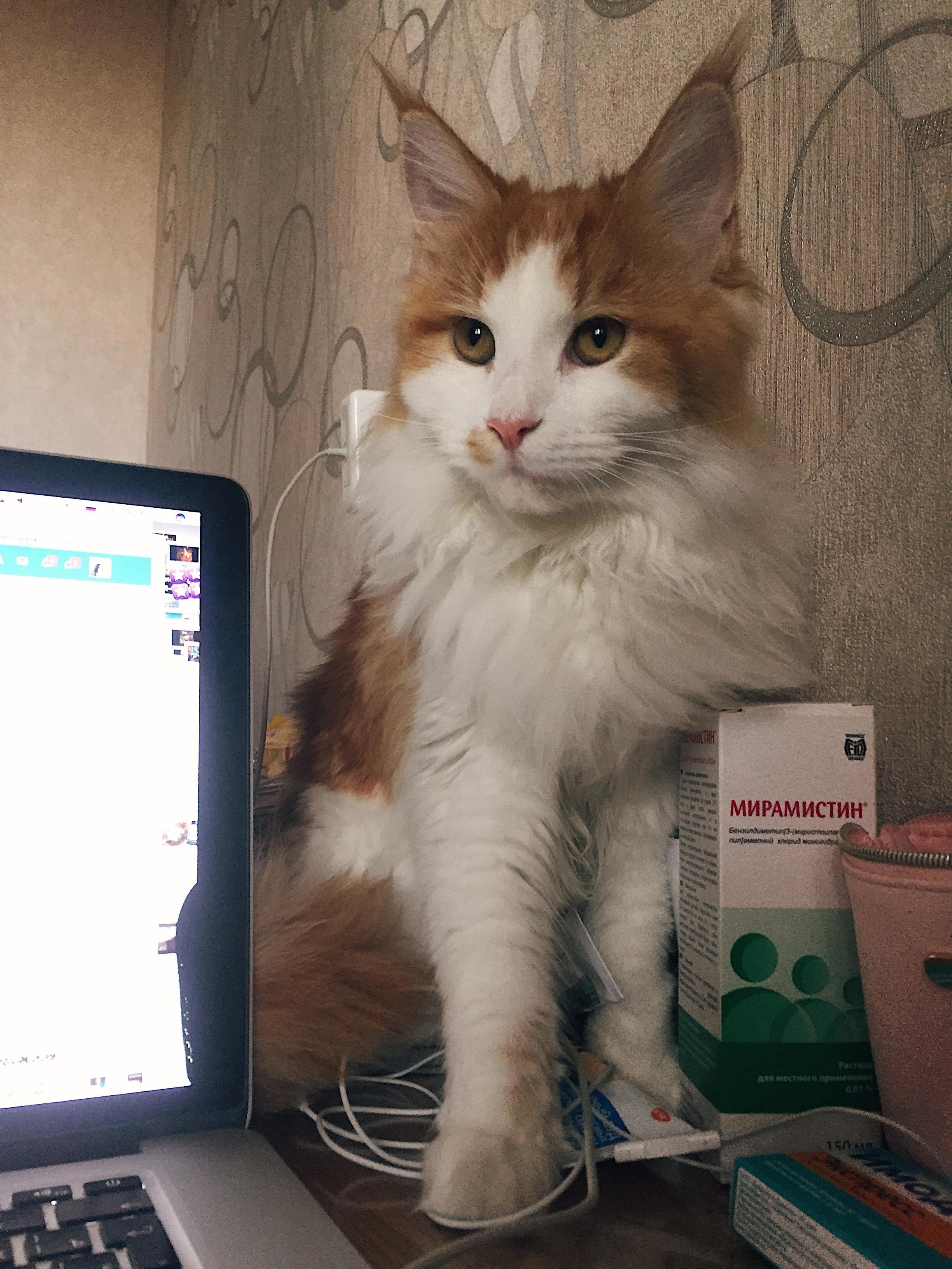 Кнопа стала сидеть в комнате, где ни одного из нас нет (чего раньше не было). И вообще ведёт себя так как будто занимается своими кошачьими делами и не обращает на нас внимание.