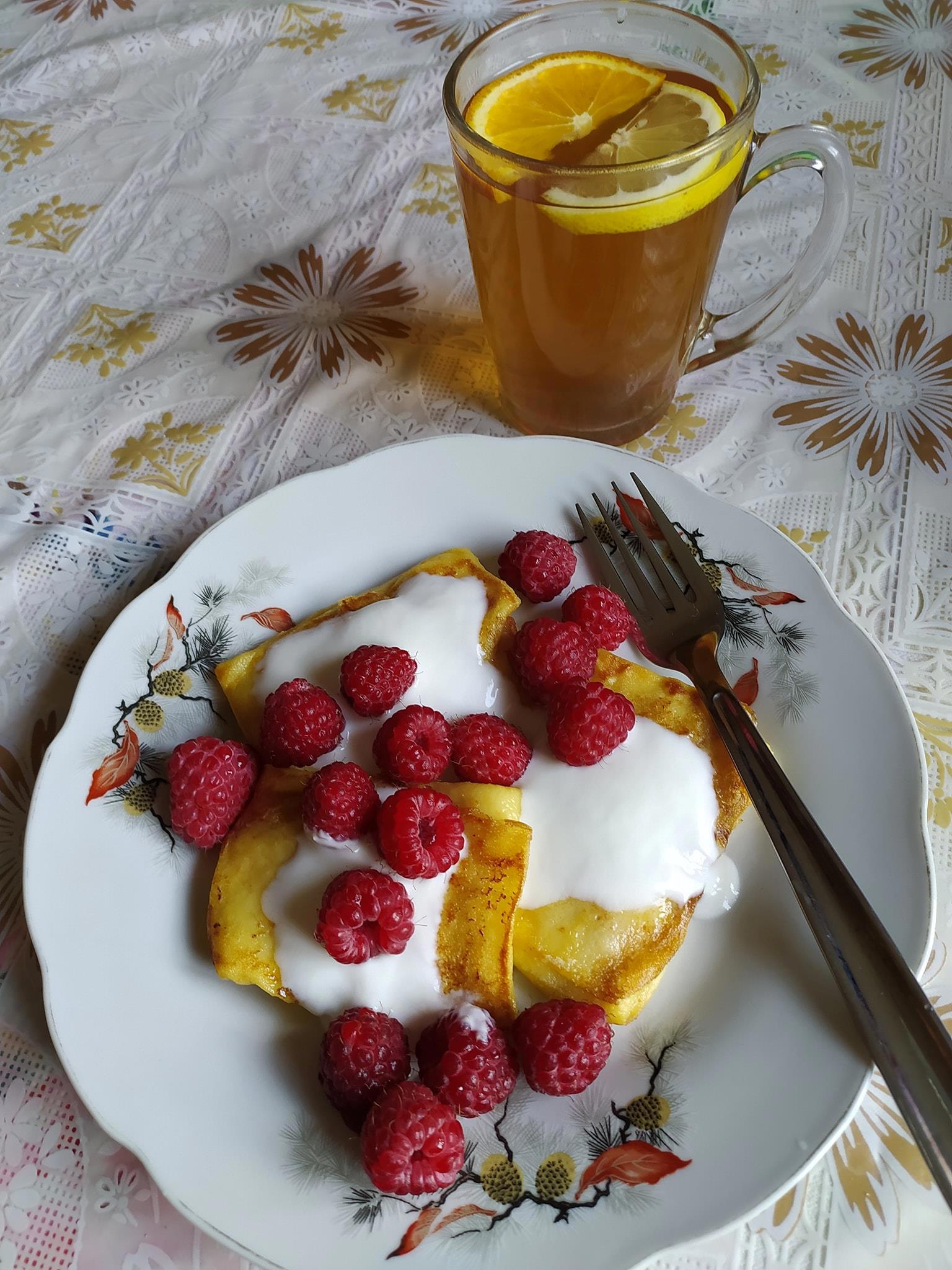 Травяной чай и блинчики с творогом. После такой еды хорошо думается, и в голову приходят крутые сюжетные повороты. Я не шучу!