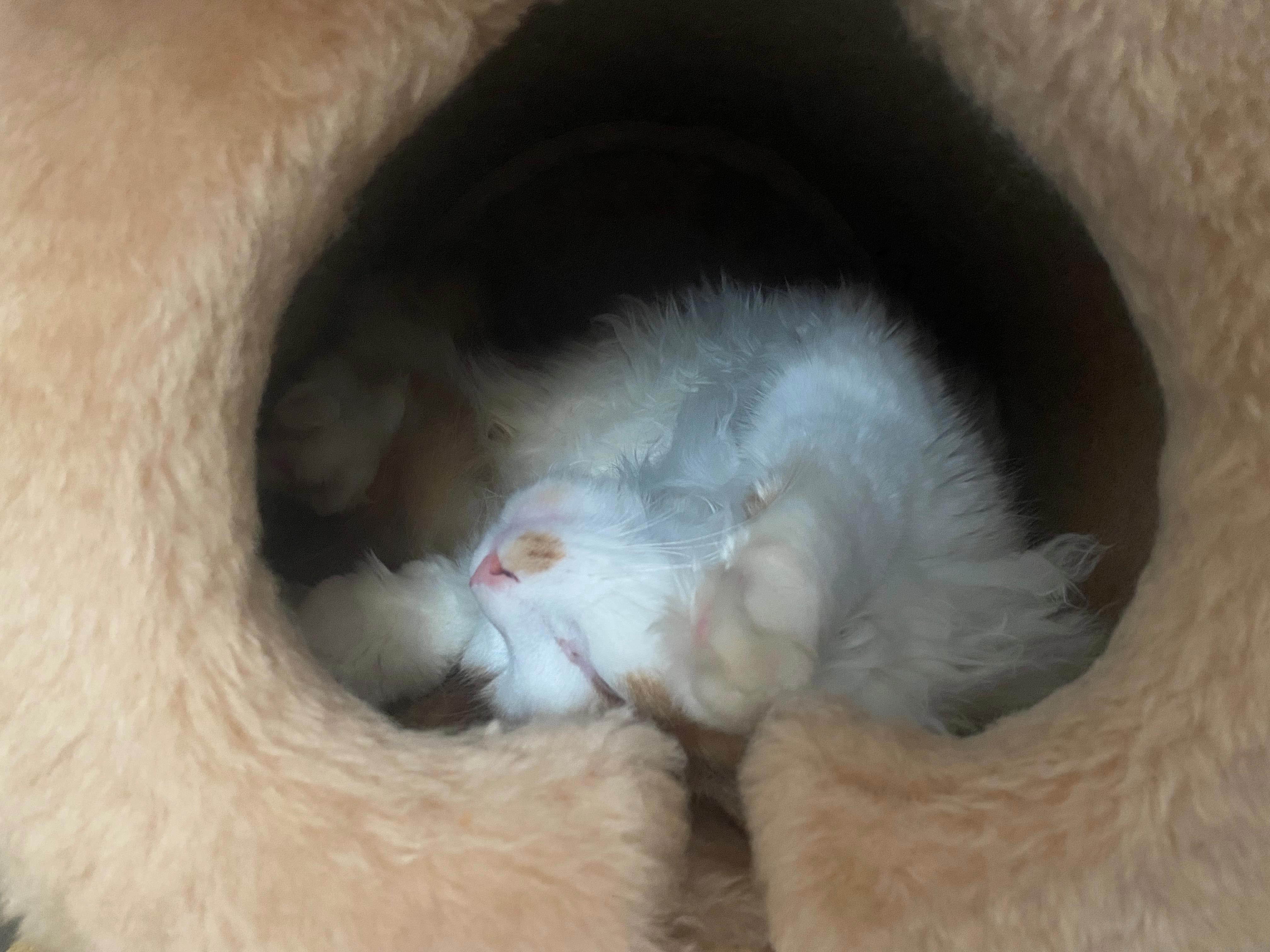 Спустя два месяца Кнопа заметила помпон на домике и стала временами с ним играть, мы немного выдохнули, 10% домика окупились. Спустя ещё три месяца Кнопа стала туда залезать редко, на несколько минут. Но в целом, относилась к нему безразлично. Я писала об этом юмористический блог, потому что всё, что мне оставалось, это посмеяться над собой.
