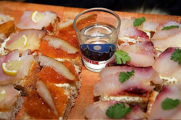 Строганина. К ней полагается ещё и макало то есть соус. У каждого едока своё макало. Я люблю уксус с солью и перцем.