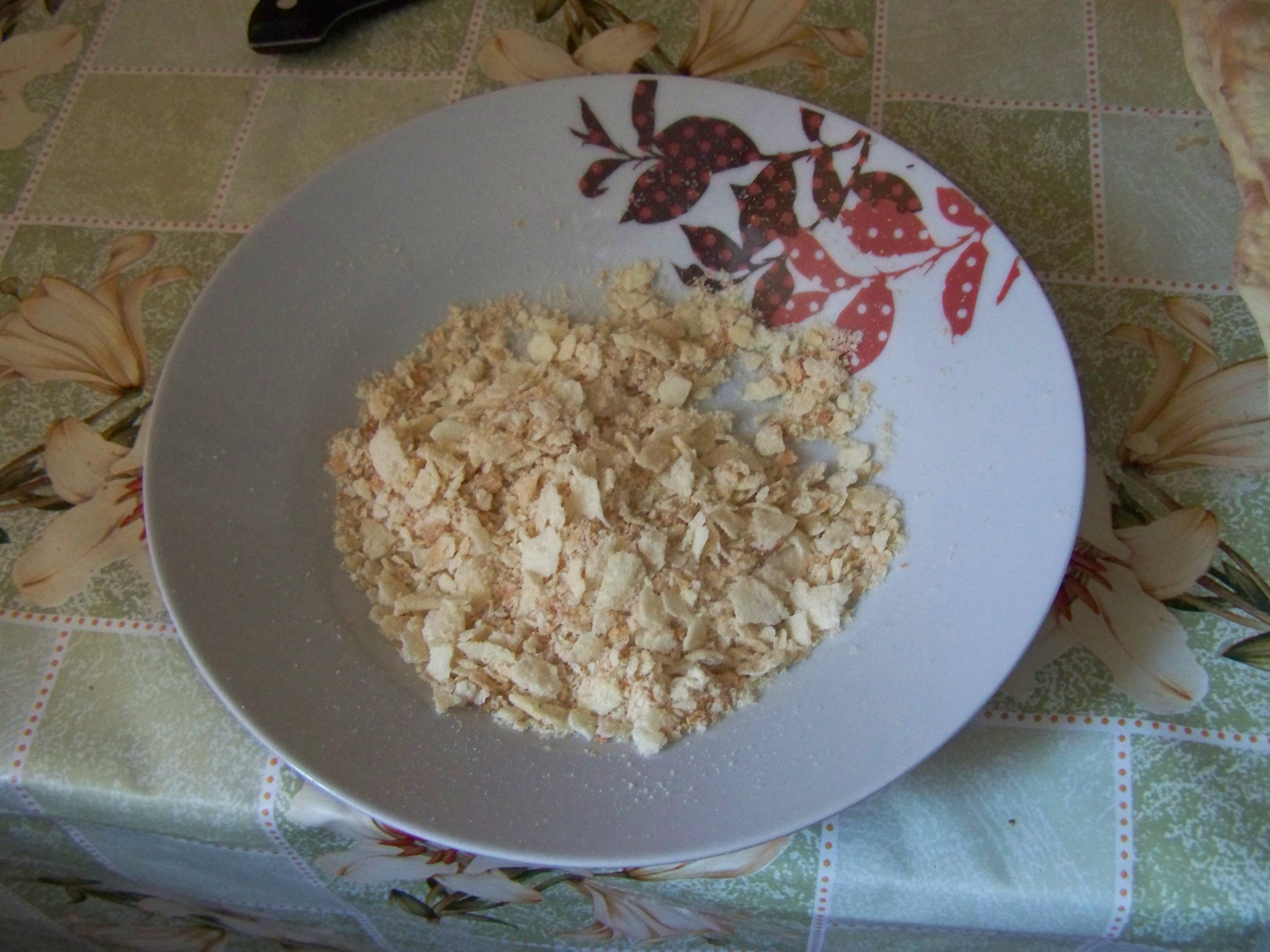 Маленькая пышка пойдет на посыпку торта, которую размалываю в крошку, как показано ниже.
