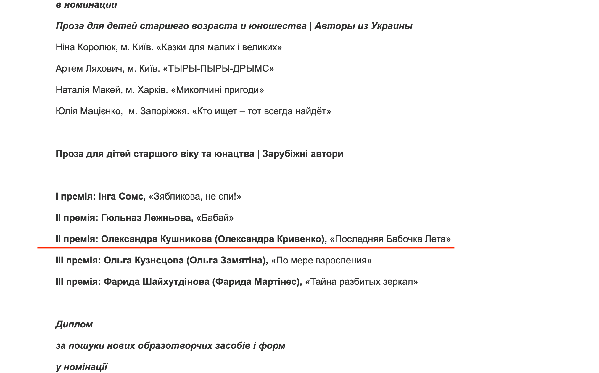 Только списки огласили, я себя и не заметила. Они на украинском языке. Я там иду, как Олександра.