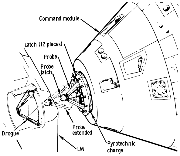 Latch - это те самые защёлки, которые должны были зафиксировать оба аппарата, но позорно провалили эту ответственную миссию. Смог бы беспилотник осуществить эту стыковку после срыва первой попытки? Вопрос риторический. А если бы проблема повторилась после взлёта с Луны, то астронавтам пришлось бы перебираться в командный модуль прямо через космос - как в "Гравитации", да.