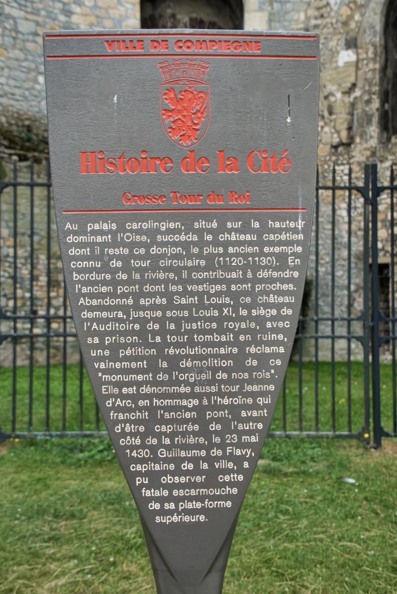 Башня Жанны д'Арк в Компьени. Через эту башню Жанна выходила 24 мая 1430 года во главе отряда городского ополчения. В тот же день её захватили в плен бургундцы.