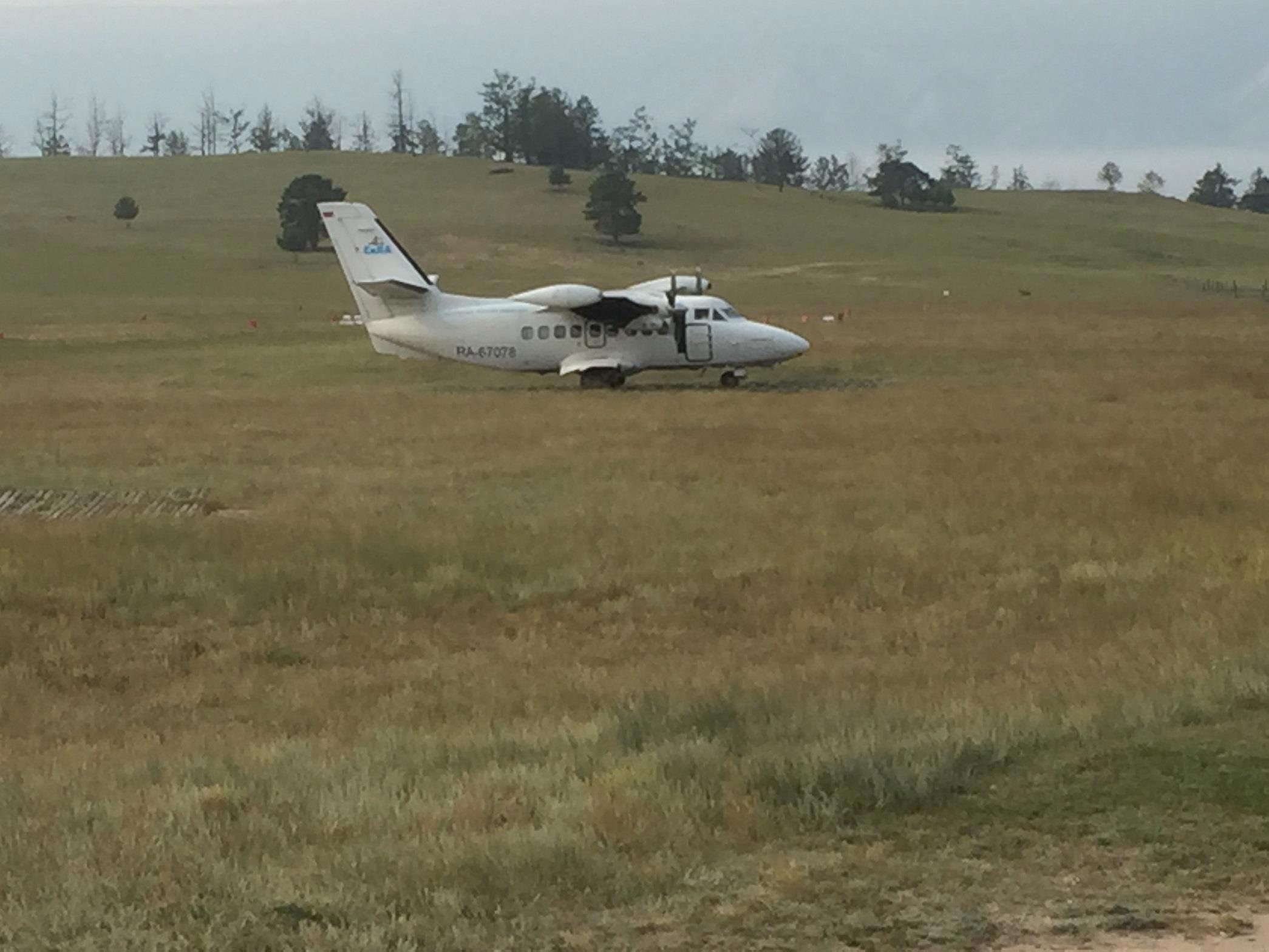 Аэродром на Ольхоне крошечный, зато уютный. Самолёт тоже небольшой — всего семнадцать мест. Летает очень мягко. Я, как только его увидела, внутренне приготовилась к воздушной болтанке... но ничего подобного не было! Немного потрясло в облаке и всё.