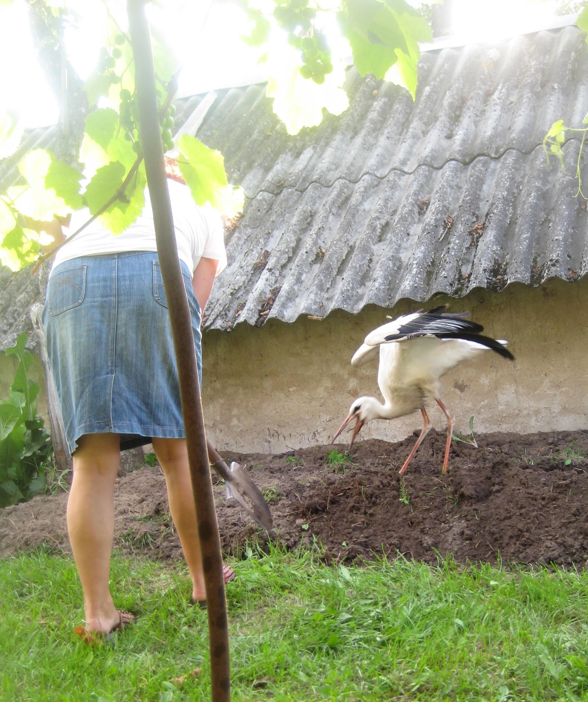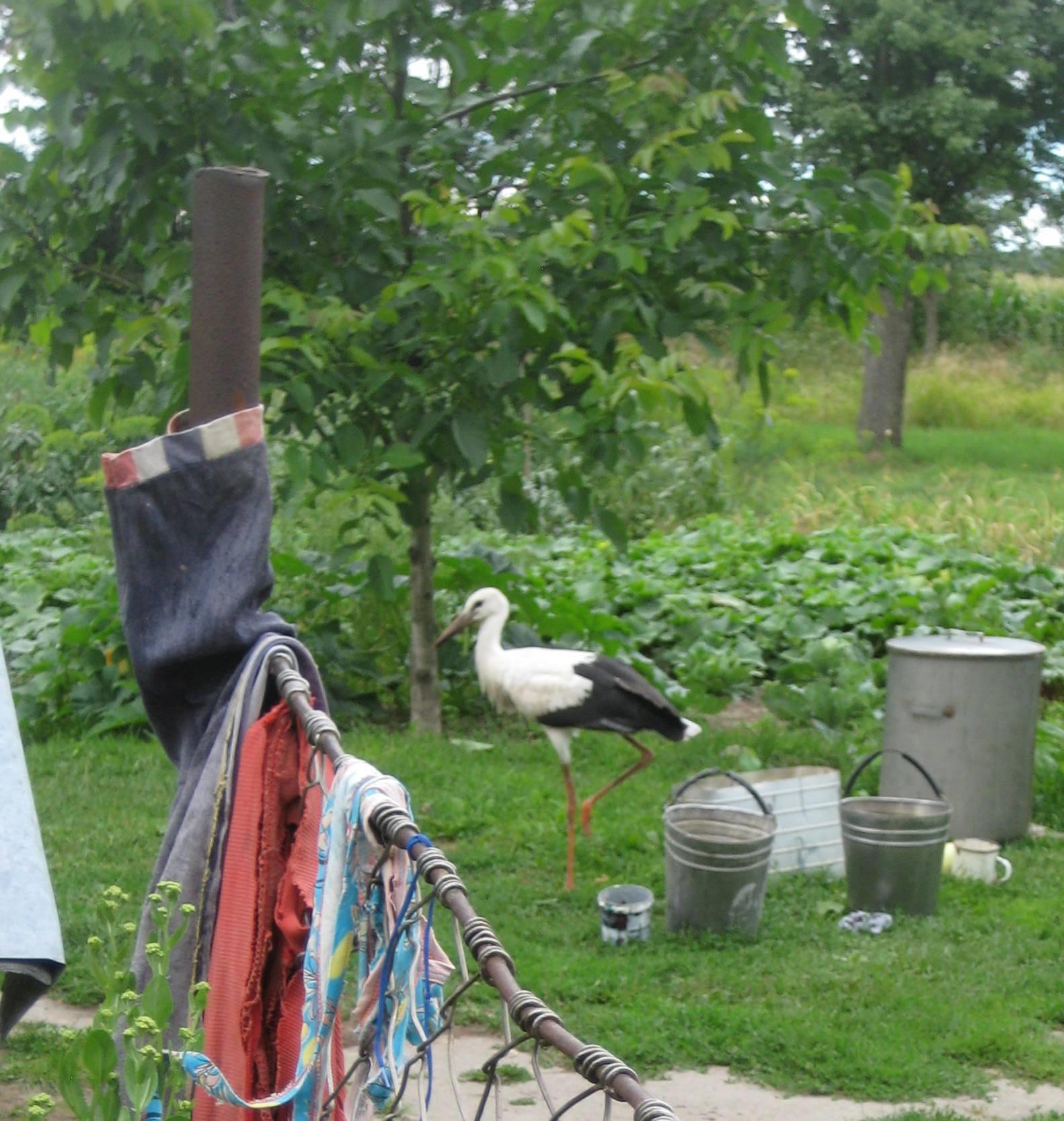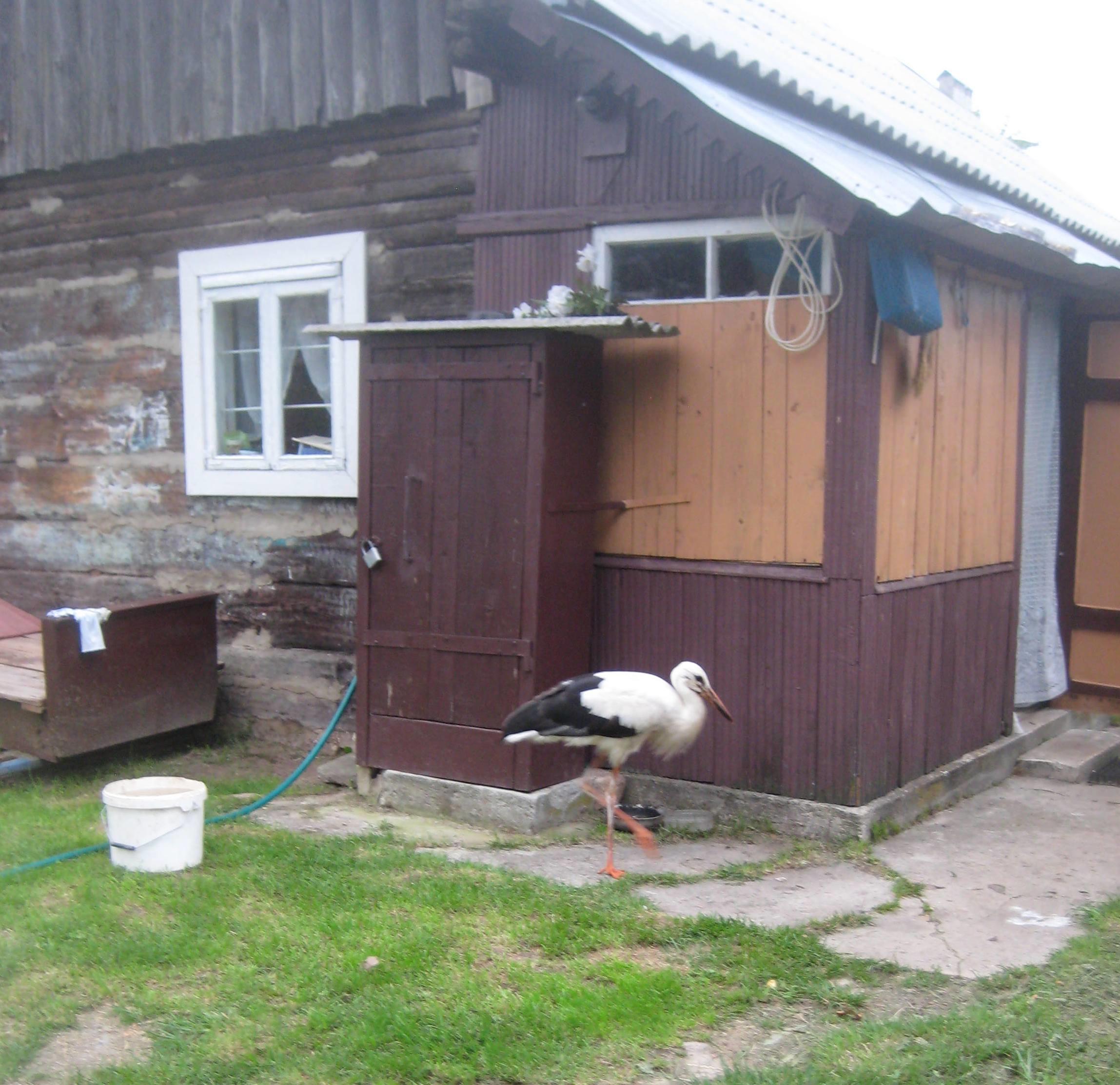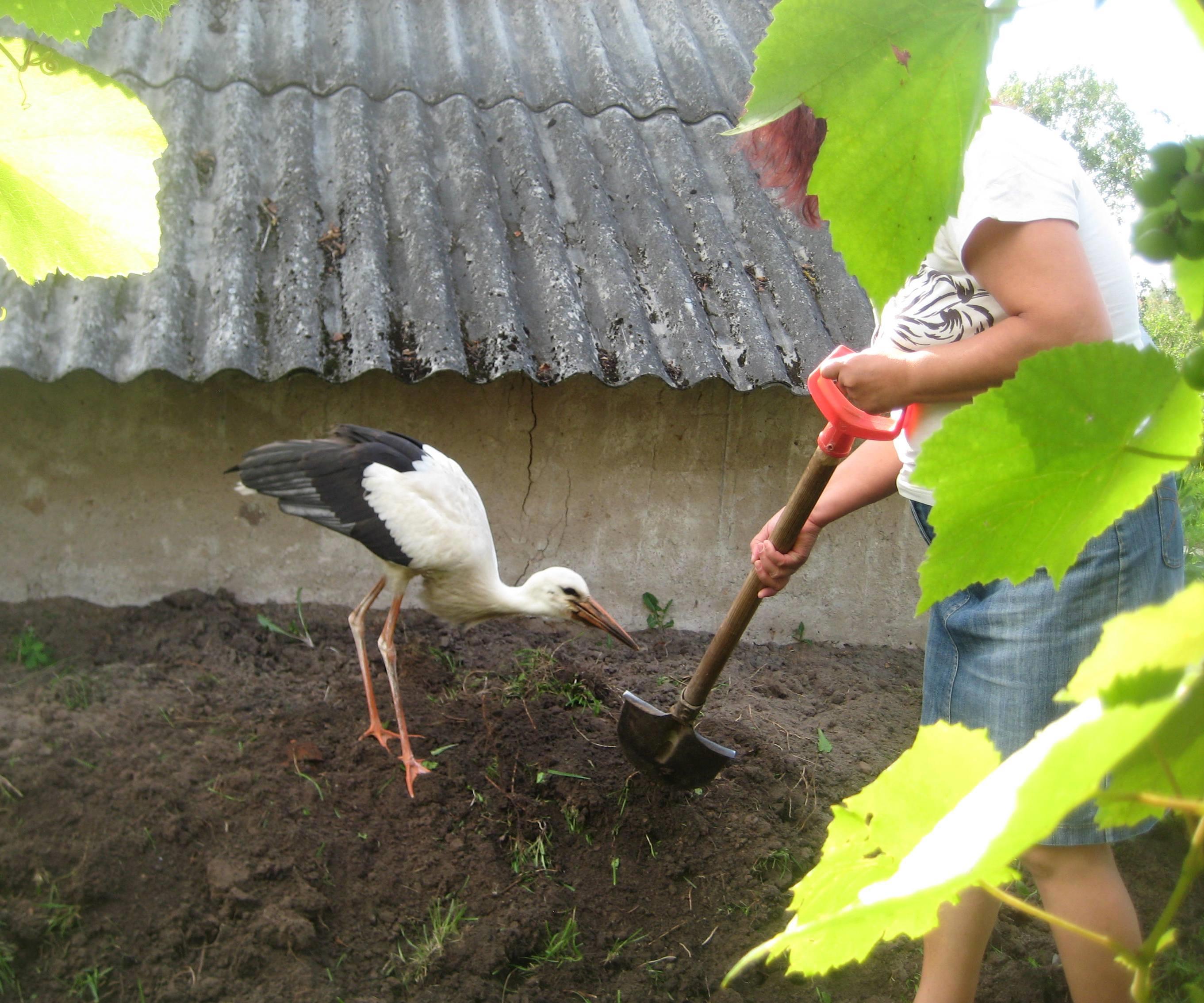 Аист пошустрел, поздоровел (хотя по-прежнему не летал), начал исследовать окрестности - и прибился к соседке Нине, которая всерьез занялась его откормом.