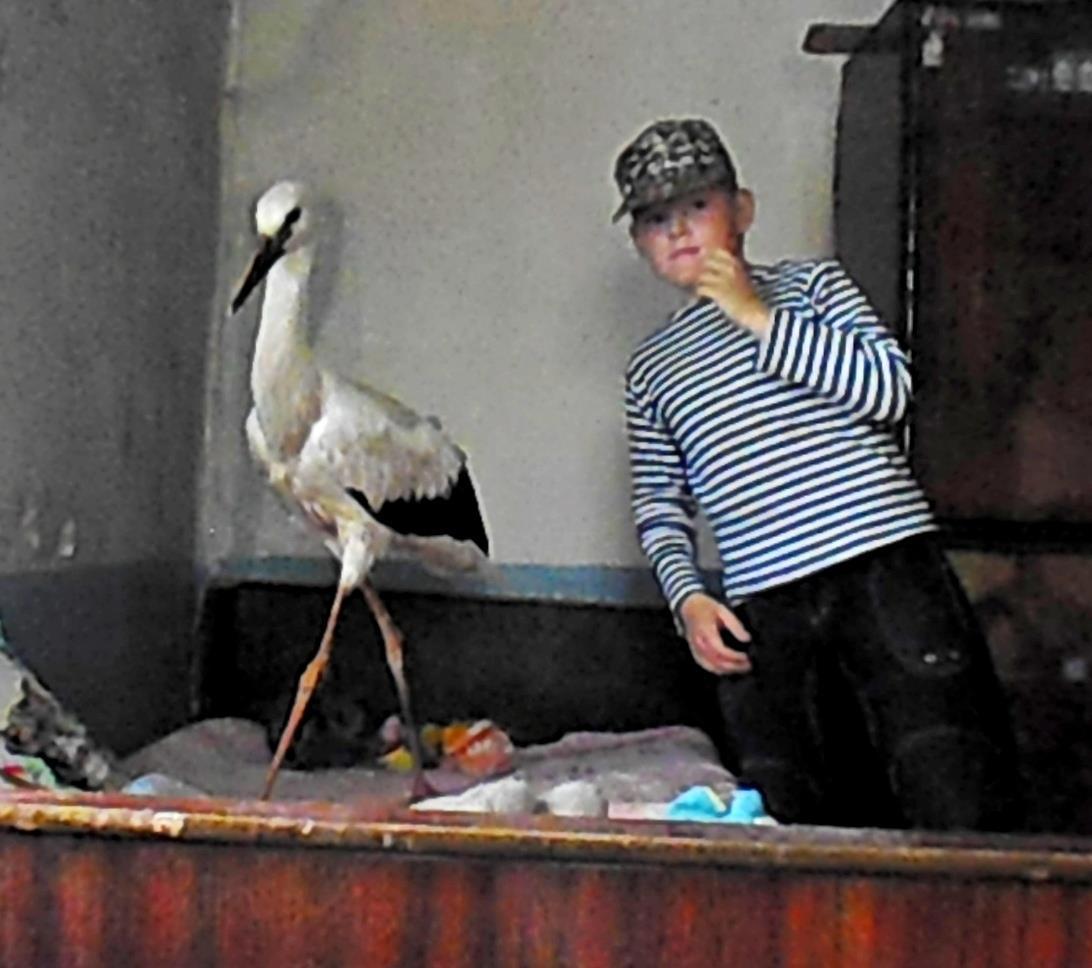 Сперва аист жил у друга в гараже, который использовался как склад всякого барахла.Мальчишки кормили его червяками и курятиной и пытались пасти.