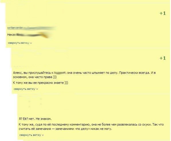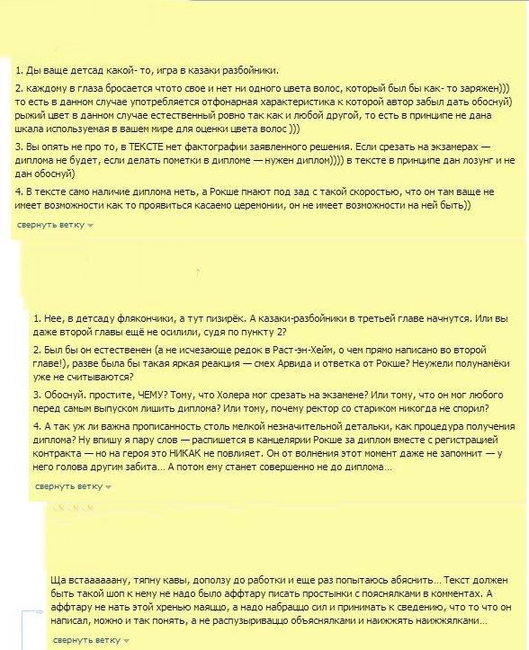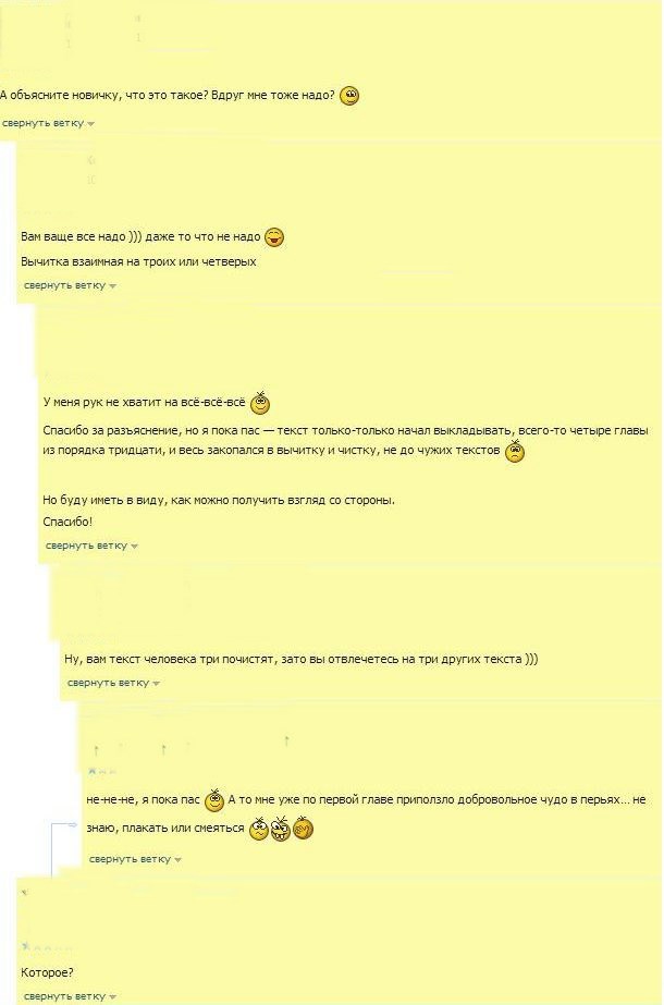 Я просто оставлю несколько скринов, котятки. Скринов, сделанных с переписки на другом сайте и без указания имен, хотя, конечно манеру речи одного из собеседников не узнать трудно. Типо претензии, типо к тексту... пусть каждый выводы делает сам для себя - откуда растут легенды