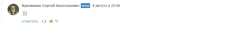 Целых два раза, вместо того, что бы ответить на критику разумно, я получаю от автора ")))". Похвально что меня не кинули в бан и не заблочили мой коммент, как бывает иногда с подобными мне критиками, но это не меняет ситуации, совершенно. Вот если бы в реальной жизни на любое слово поперёк можно было бы ответить ")))", то мир, дружба, жвачка царили бы во всей вселенной. Но, извините, такому не бывать. (Первое - это глупо. Второе - не каждый носит с собой клавиатуру 24/7 что бы строчить скобочками)