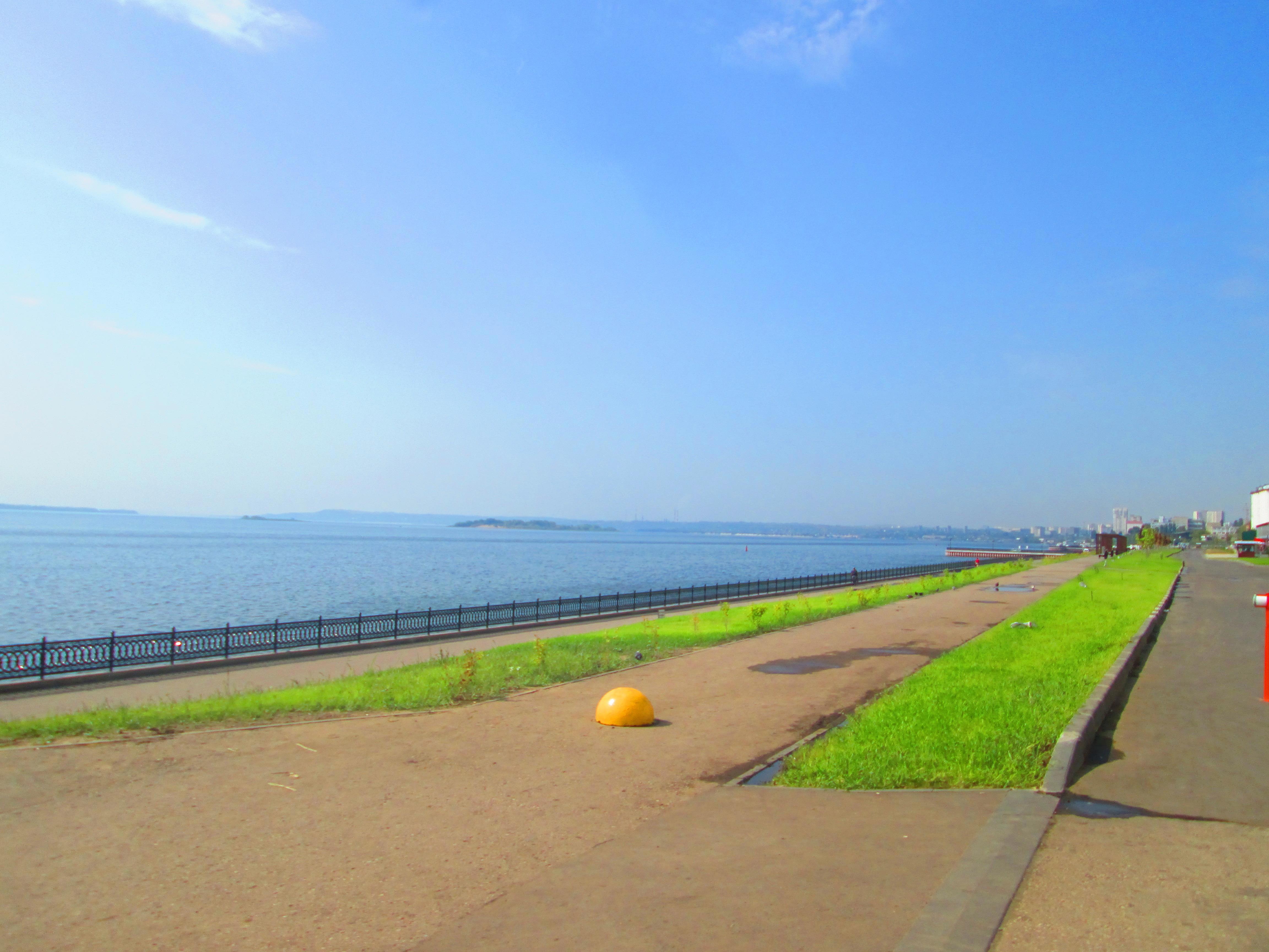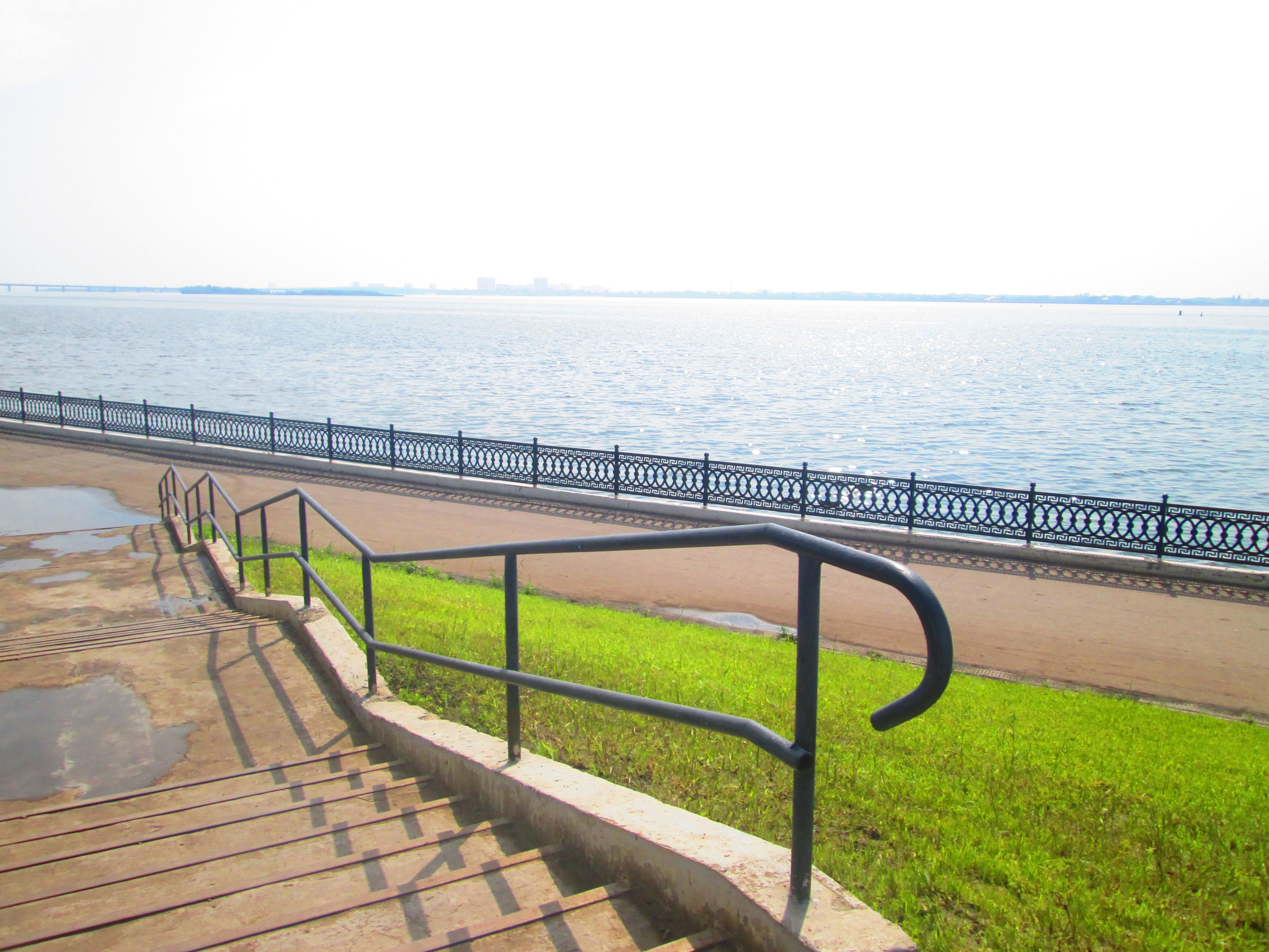 Проведали старушку-Волгу. Соскучились! В июне мы с нею так и не повидались, т.к. набережная была на реставрации. На этот раз думали, брать ли купальники. Решили, что не попадем на пляж, и в последний момент я их выложила. Таскаться с дородной сумкой было вломно, и мы отделались заплечными рюкзаками. Они и так были тяжелыми из-за самых необходимых вещей. Носить то, что вряд ли пригодится, и вовсе не хотелось. И вот, оказавшись у реки, мы поняли, что вполне могли бы дойти до пляжа, окажись с собой все необходимое. Потом готовы были купаться в футболках. Но для этого стоило запастись водой и продуктами. Мы же ничего такого не взяли, вода была на исходе, и потому договорились сходить на пляж, если будет время позже. В итоге отказались от этой идеи целиком и полностью.
