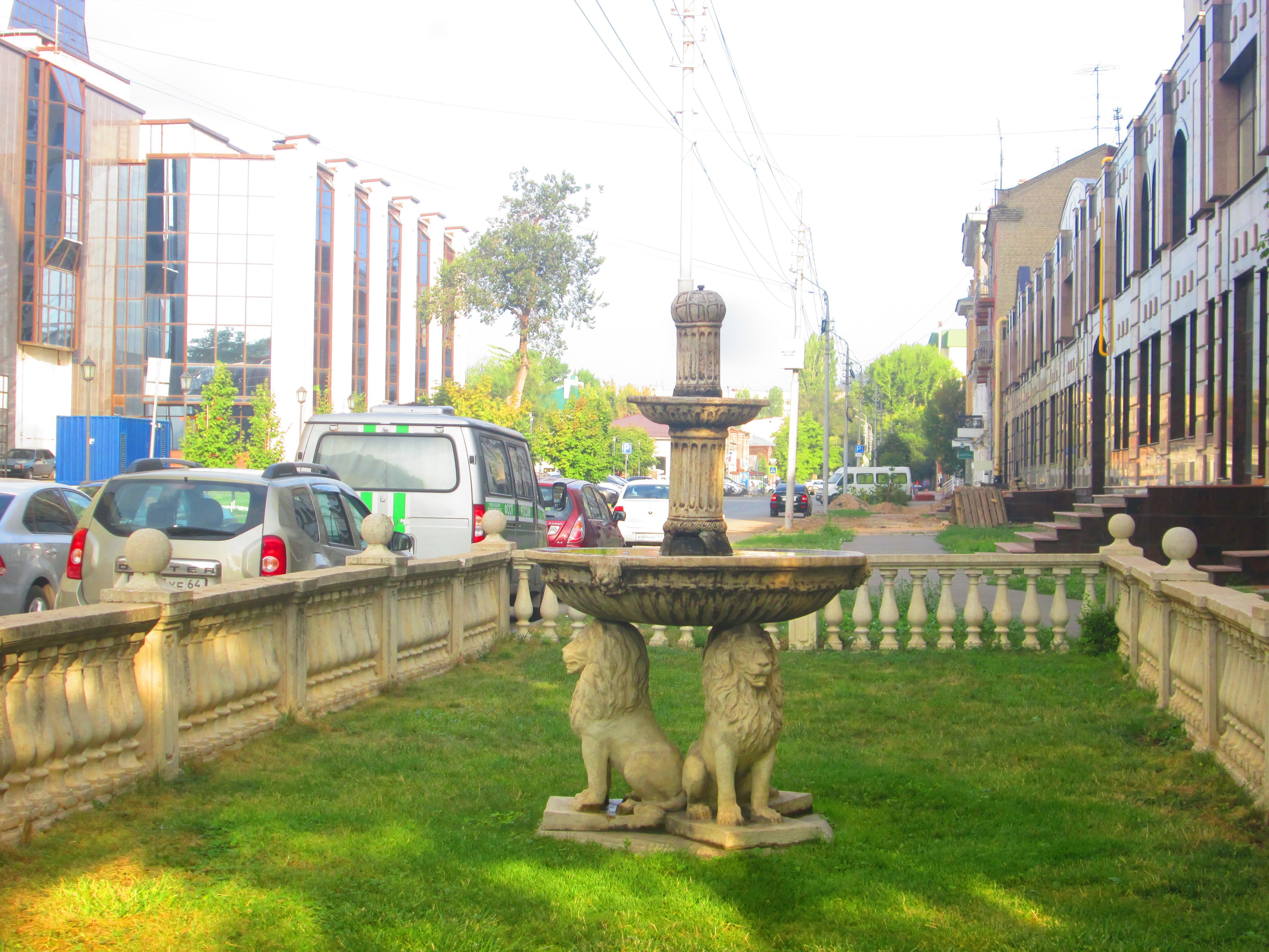 Милый фонтан с деревянной рыбой-стерлядью — символом города