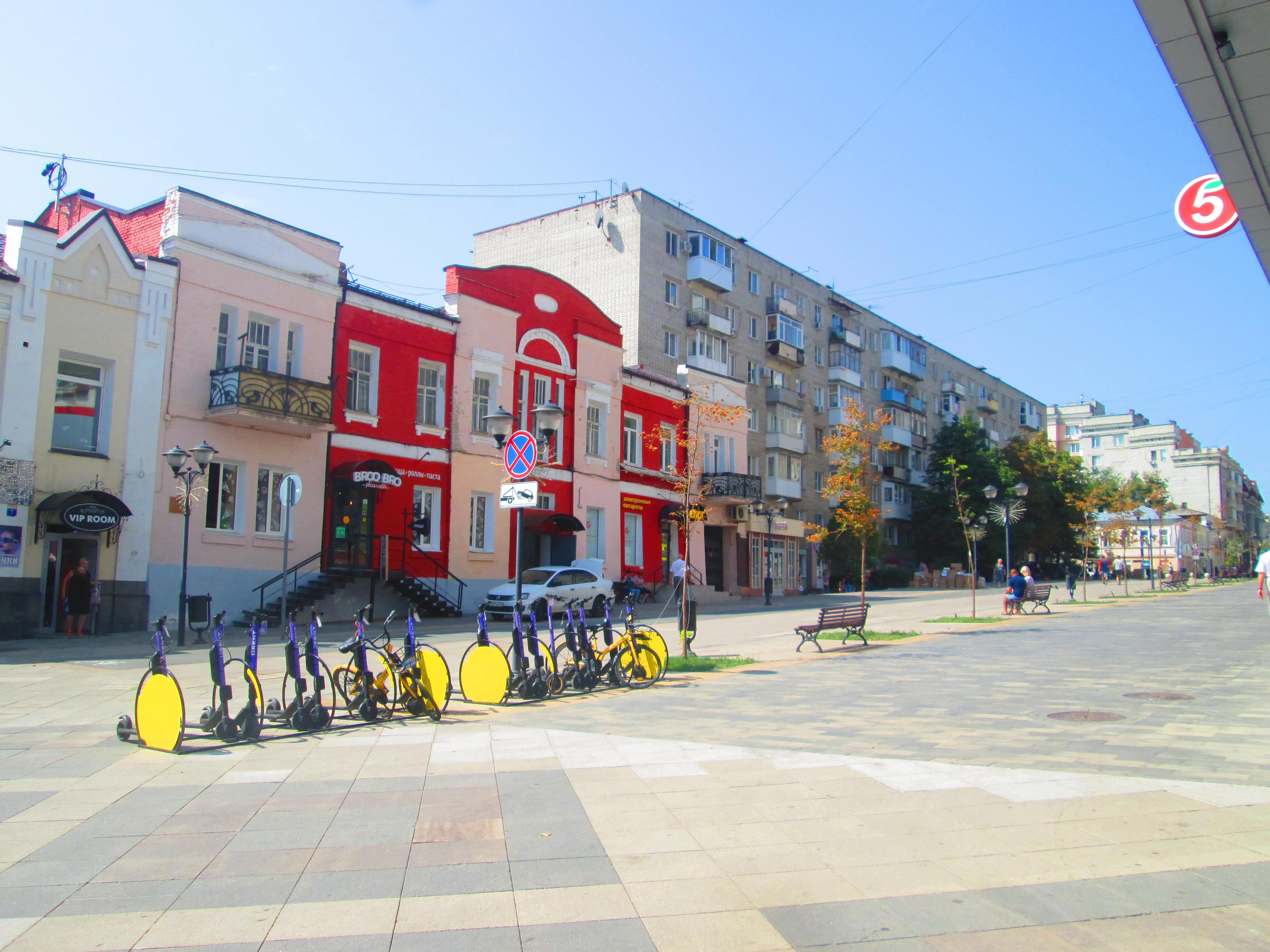 В Саратове много пунктов велопроката, потому то и дело встречаются люди на велосипедах и самокатах.