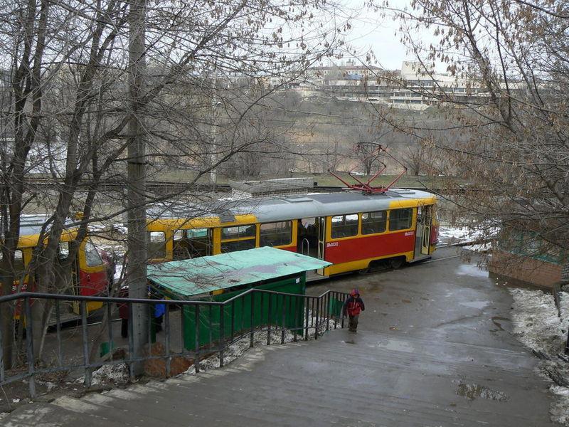 1997 год, по прямой идёт строительство второй очереди, а трамвай вывернул с правой (от нас) стороны - со станции "Площадь Чекистов":